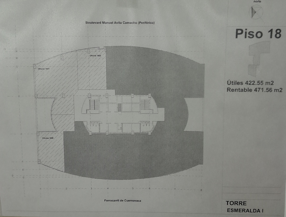 Maintenance $4 USD per m2.Torre Esmeralda I Piso 18 con 471m2 de oficinas con buenos acabados,