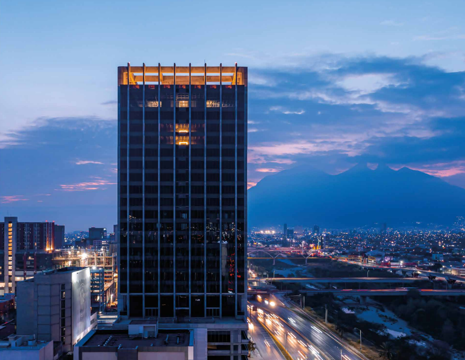 Un desarrollo de usos mixtos que se suma a la propuesta de la regeneración del Centro ofreciendo una moderna torre de oficinas corporativas y con una privilegiada ubicación en una de las principales vías rápidas de Monterrey.