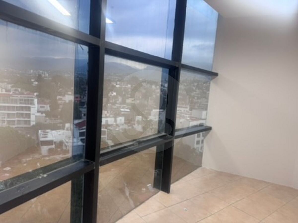 Magnificent office with a panoramic view, located on the ninth floor of a modern building, half a block from Periférico Sur, in San Jerónimo Aculco. It has a reception area, workspace, two offices, a bathroom, and two parking spaces. The building has 24-hour security.