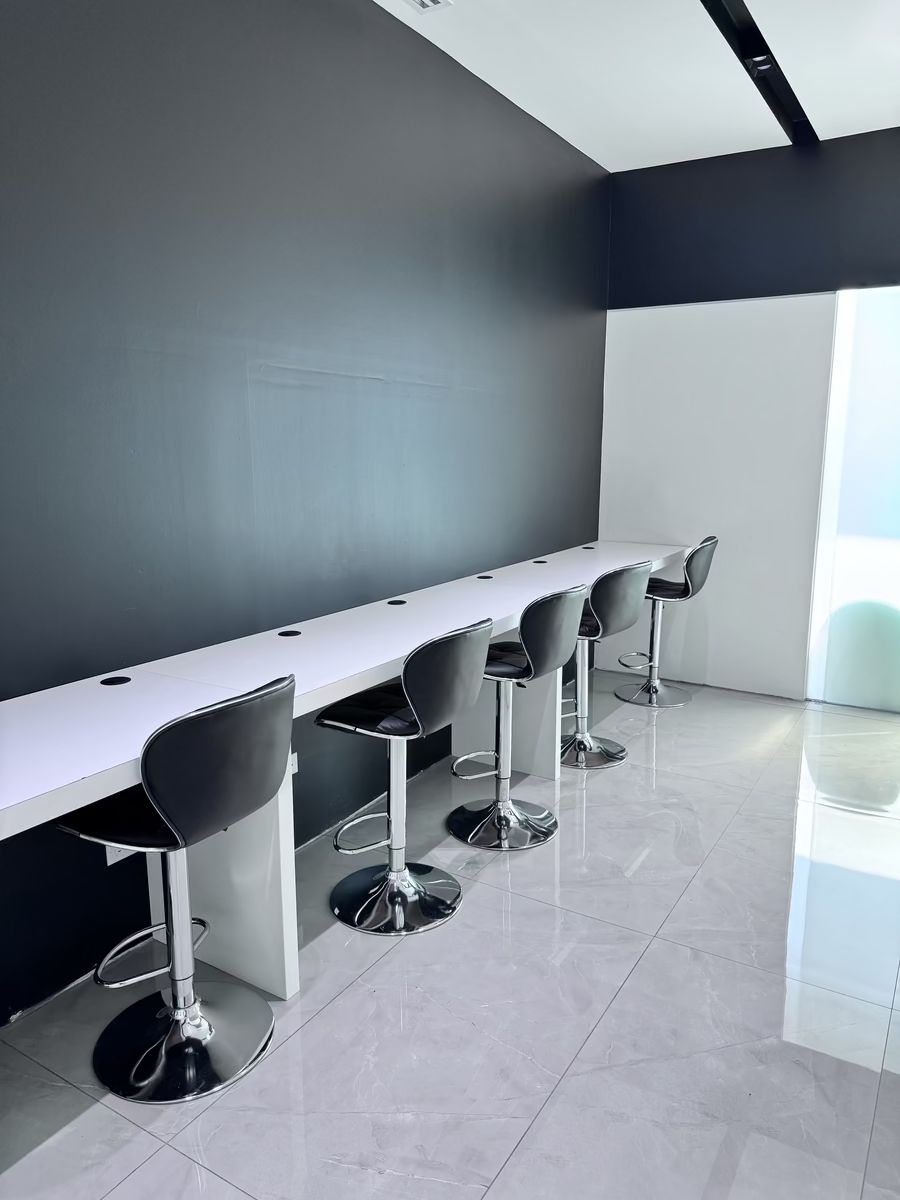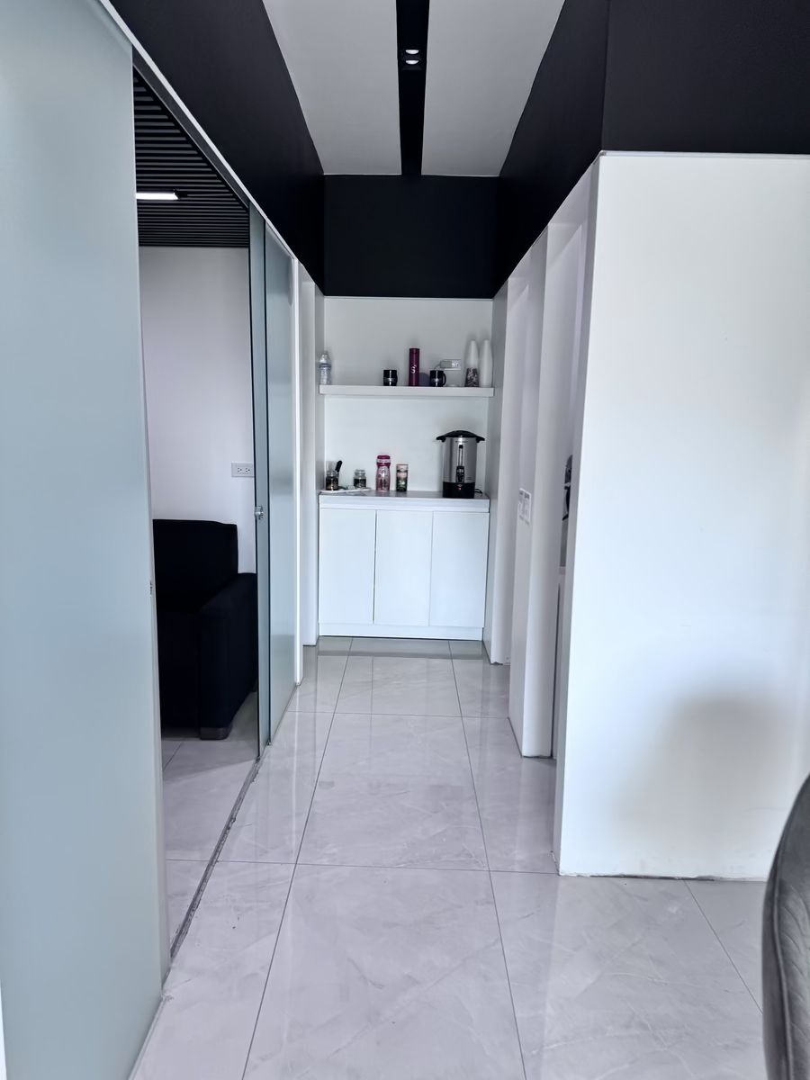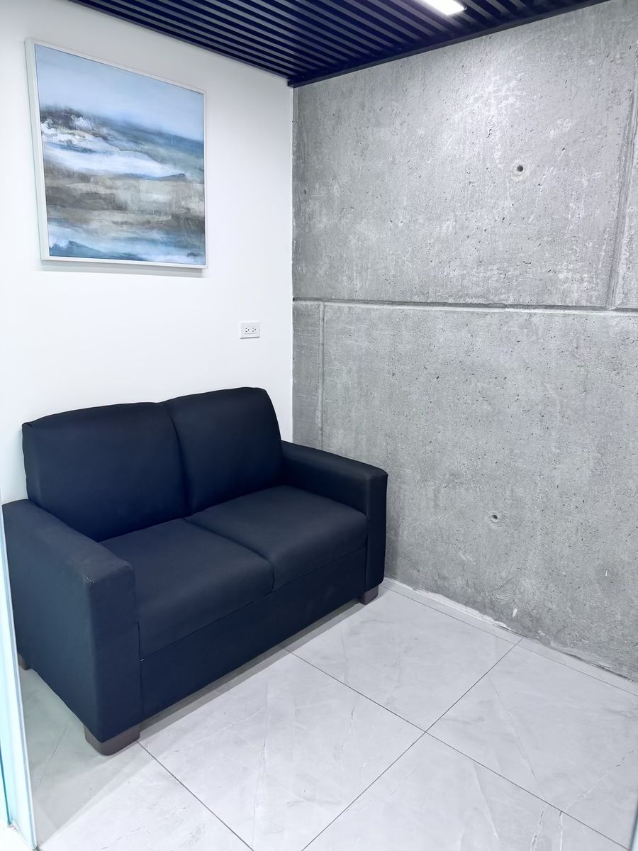 Acabados contemporáneos: concreto aparente, iluminación LED, mamparas divisorias, espacios amplios y muy iluminados.