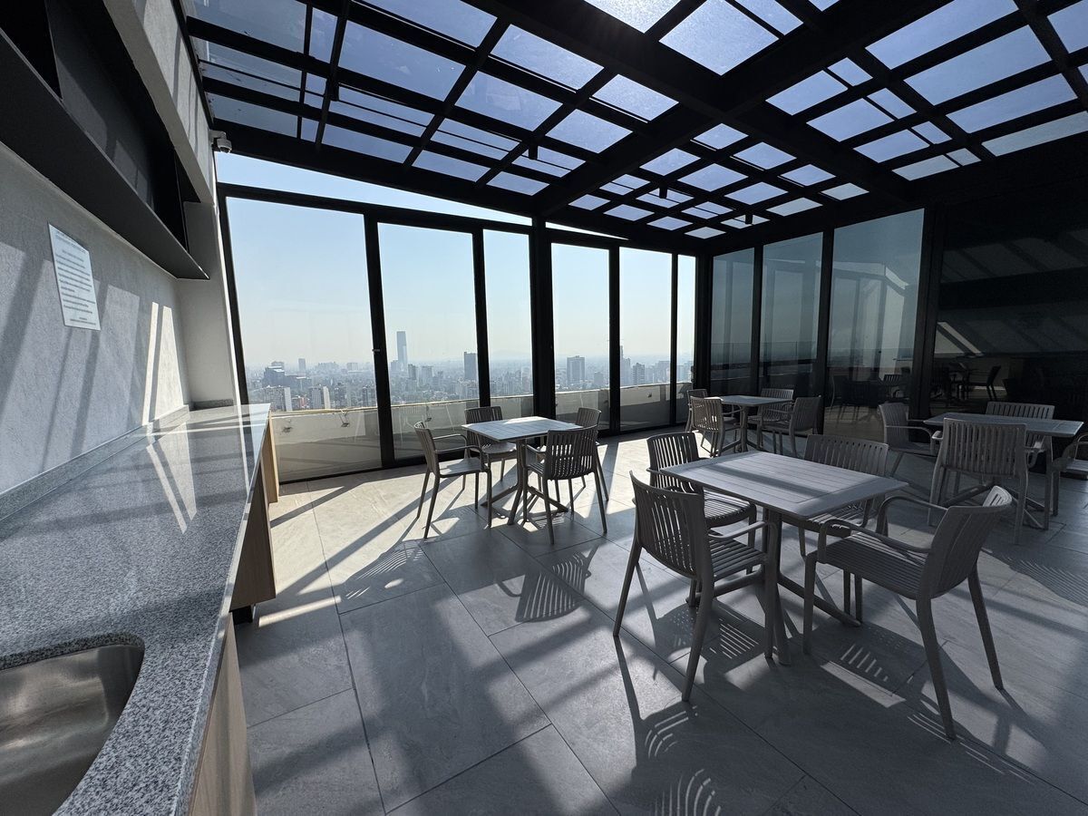 La oficina se integra por una unidad privativa que suma 63.02 m2 con el derecho de uso del vestíbulo del piso, escaleras (normal y de emergencia), baños de hombres y mujeres y 2 cajones de estacionamiento.