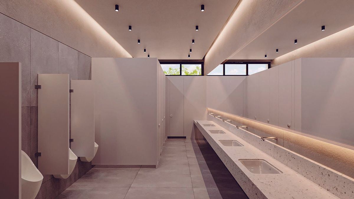 The building includes two elevators, stairs, and restrooms for ladies and gentlemen on each floor, covering all basic needs with comfort and style.