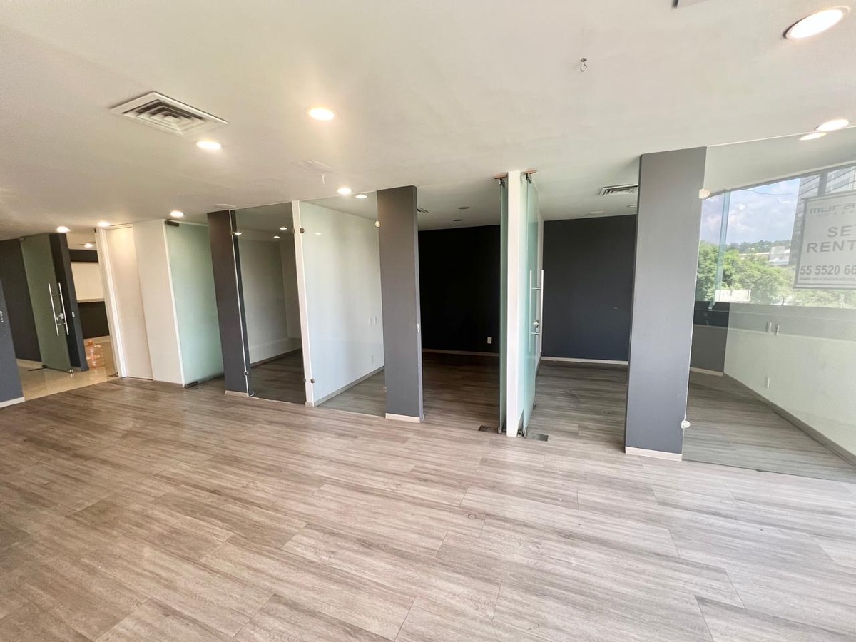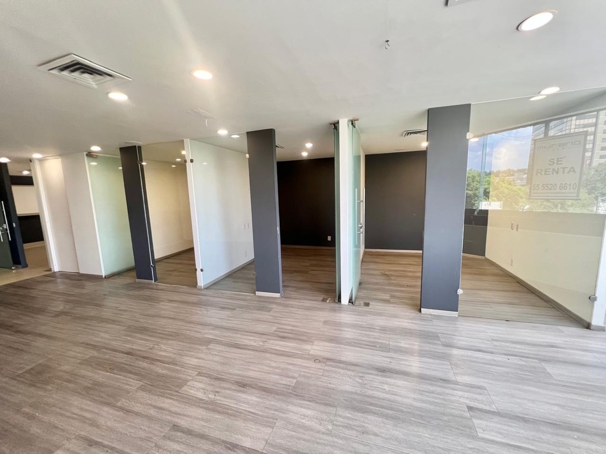 Oficina o consultorio en Renta en Paseo de las Palmas en Torre Lomas. Con una ubicación privilegiada y una muy buena vista a Palmas, en la parte baja de Lomas de Chapultepec muy cerca de centros comerciales y de negocios 110m2 Recepción y sala de espera. Sala de juntas. Área de trabajo muy grande . 3 cubículos. Cocineta. Aire acondicionado. Sistema de alarma y planta de emergencia . 3 elevadores. 2 lugares de estacionamiento independiente. Vigilancia de 24 hrs El precio de renta incluye el costo del mantenimiento. Renta + IVA