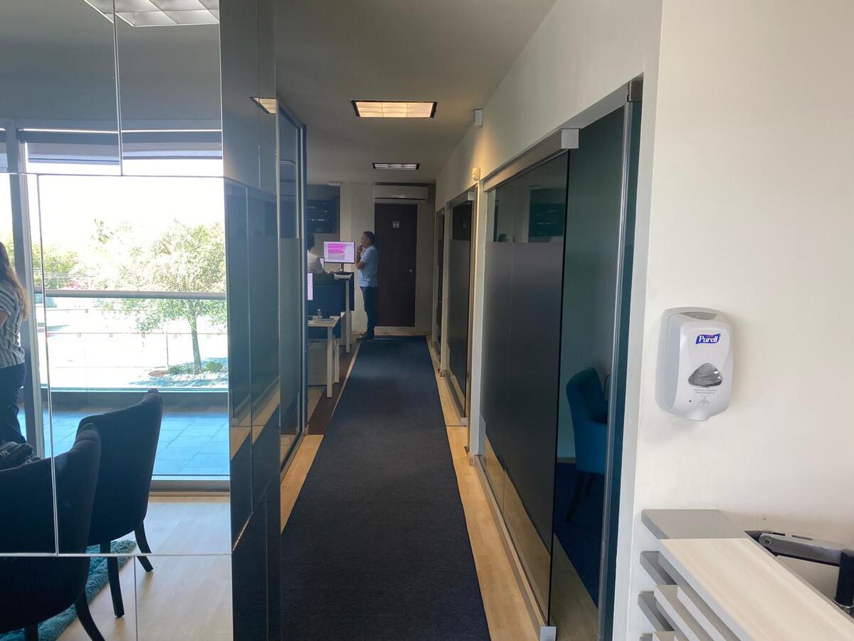 It has 120 m2, reception, 3 private offices, meeting room for 12 people, workroom, 2 bathrooms, 4 mini-splits, flooring, walls, plaster, paint, lamps in each area, 4 exclusive parking spaces.