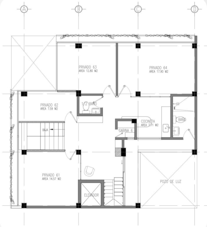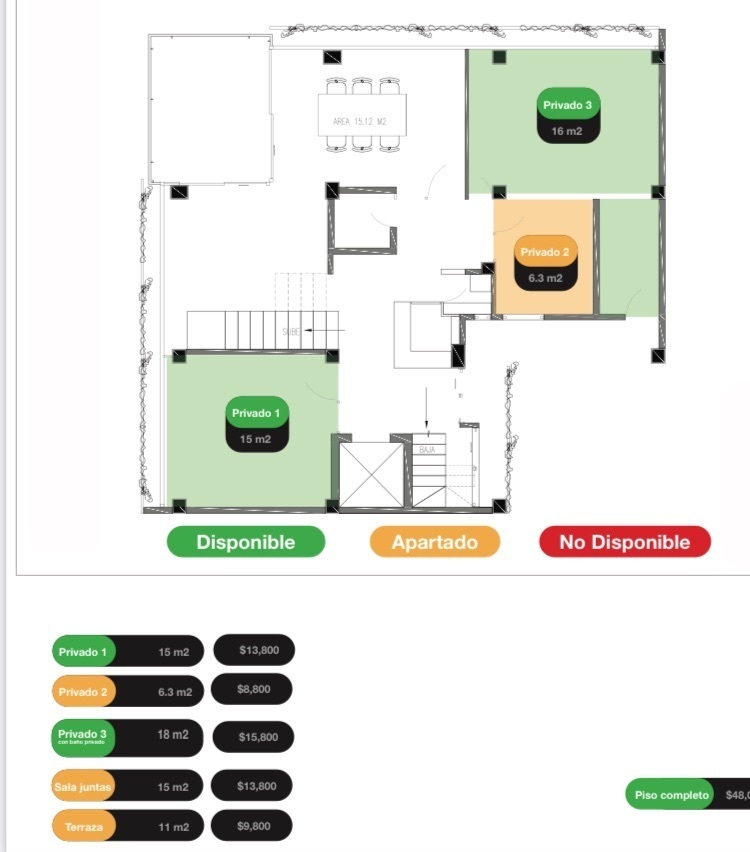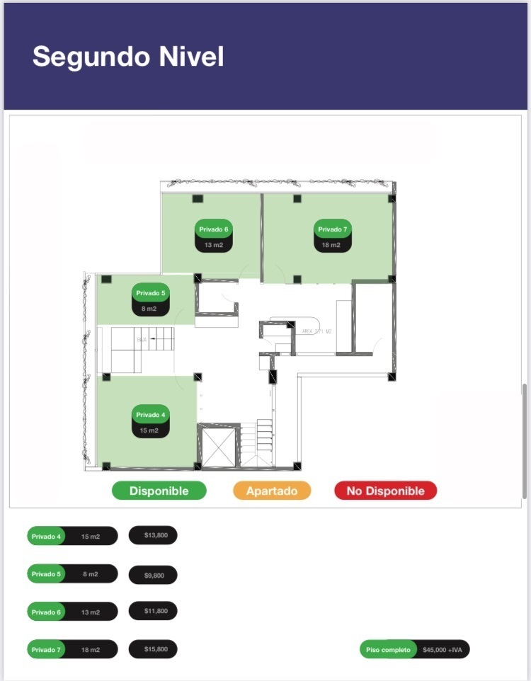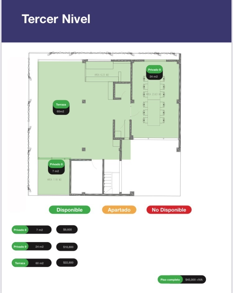 They are 3 floors of offices, can be rented by cubicles or the entire floor for $45,000. Annex measurements, price and availability.Oficinas en renta en un piso de 100 m2 aprox. Anexo planos de distribución.