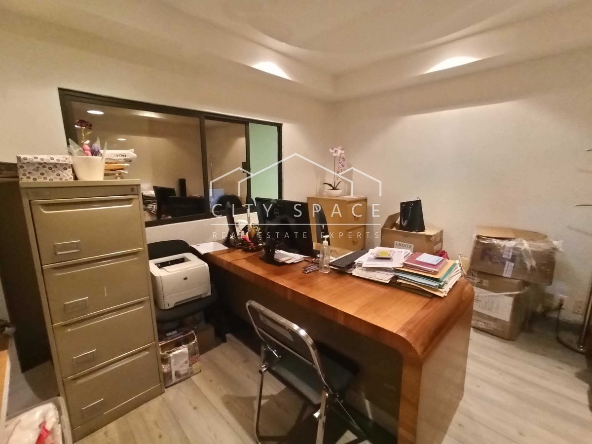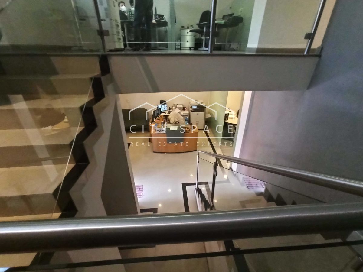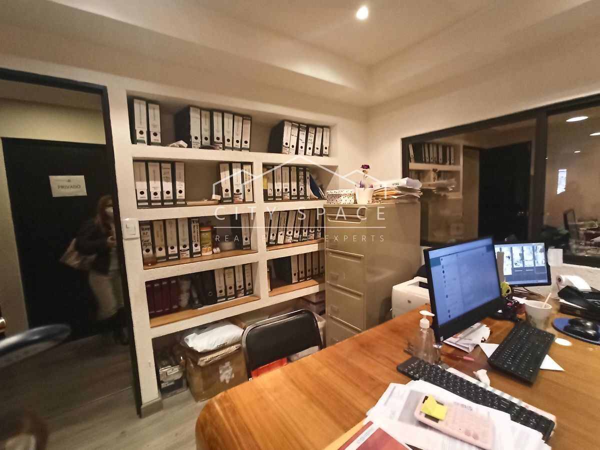 Ground Floor. It has 180 M2 of rentable area, currently occupied with reception, meeting room, private offices, storage room, cleaning room, dining room, open work area, 2 bathrooms. In front, you find the parking lot with electric gate (of 60 M2).
