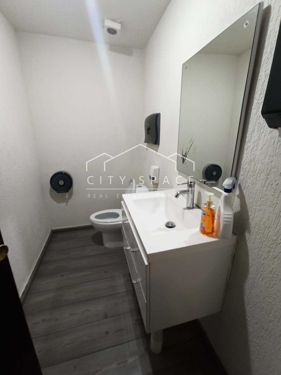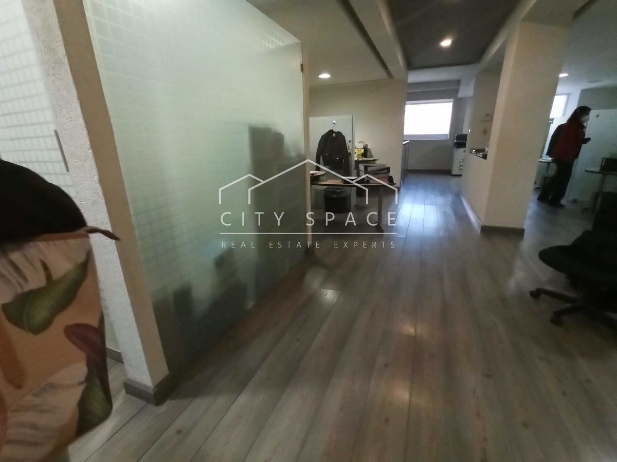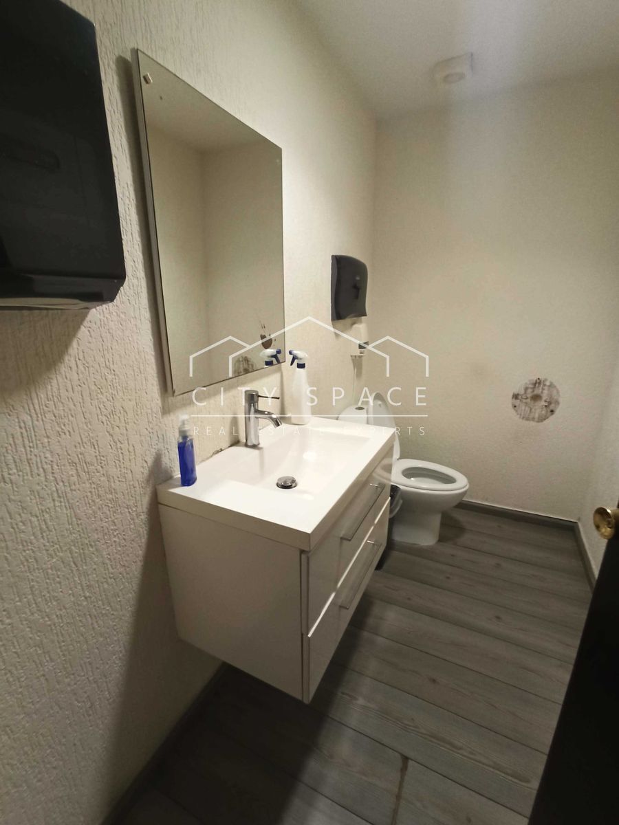 Ground Floor. It has 180 M2 of rentable area, currently occupied with reception, meeting room, private offices, storage room, cleaning room, dining room, open work area, 2 bathrooms. In front, you find the parking lot with electric gate (of 60 M2).
