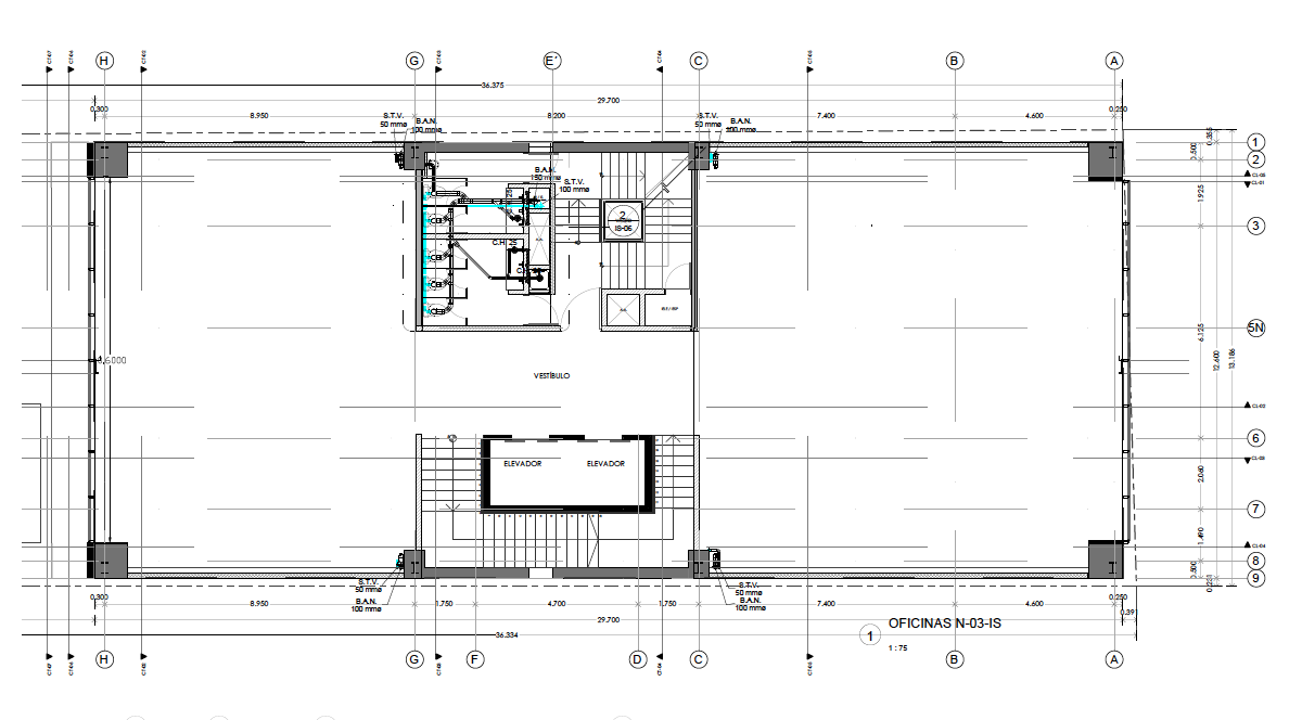 Las oficinas se integra por dos unidades primitivas de 56.05 m2 63.02 m2 con el derecho de uso del vestíbulo del piso, escaleras (normal y de emergencia), baños de hombres y mujeres y 4 cajones de estacionamiento.