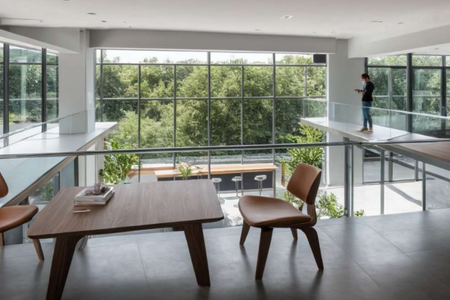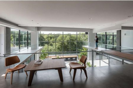 It is separated 2.25m from the circumference of the offices by a planter that is located on Level 6, giving a separation to the building and helping with ventilation.