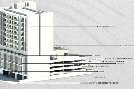 Yucatán, The project consists of a 14-level tower of which one level is for commercial premises, the next 5 levels are for parking, the next 6 levels are for offices and finally the roof top that can be used for events and the basement, which is for machine area, treatment plant and cistern.