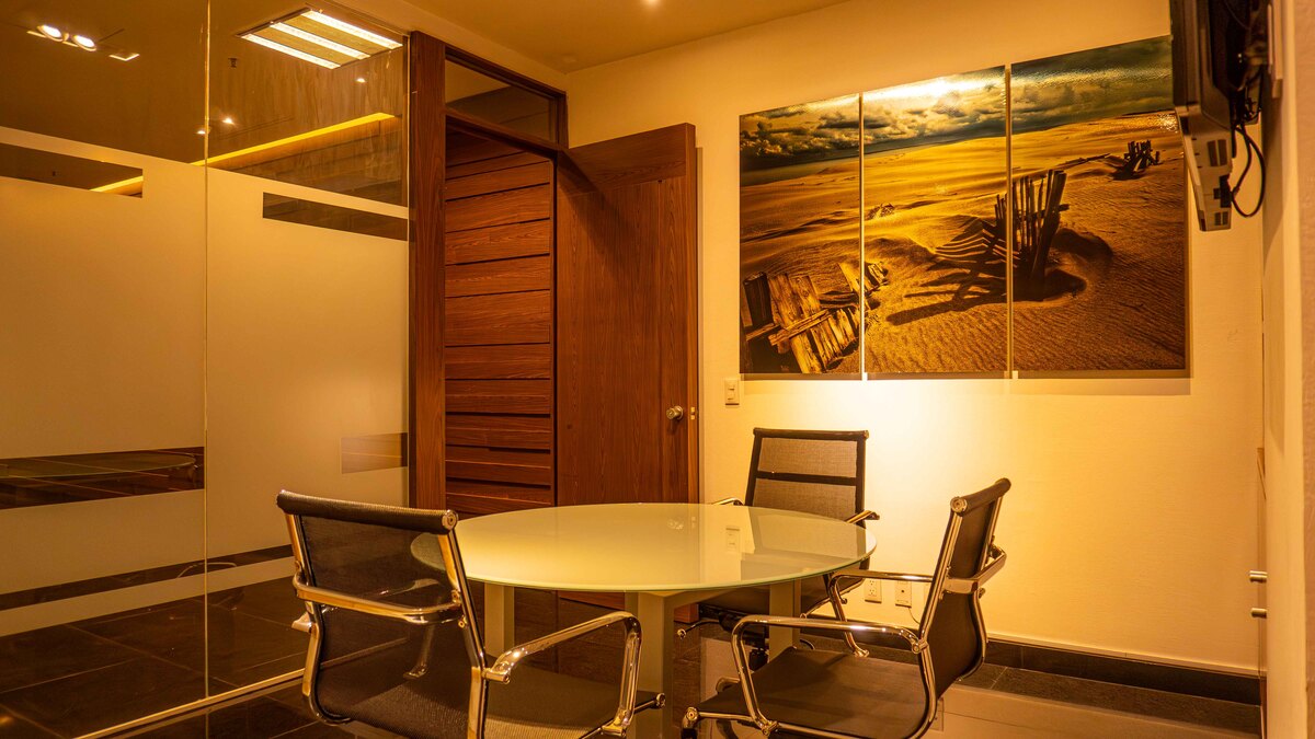 sala de juntas, recibidor y sala de espera, diseñados para proyectar profesionalismo y