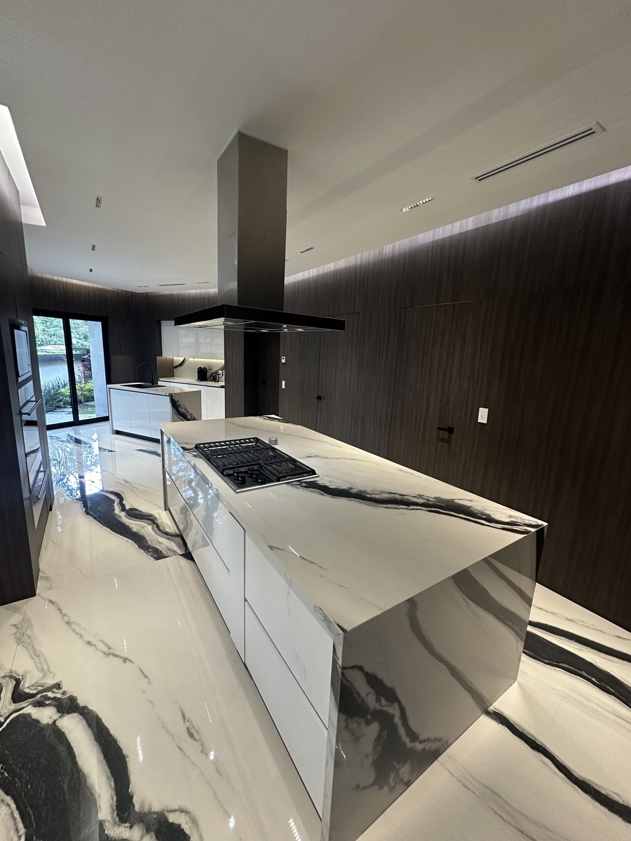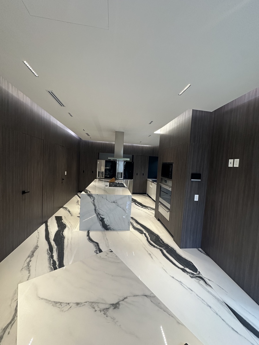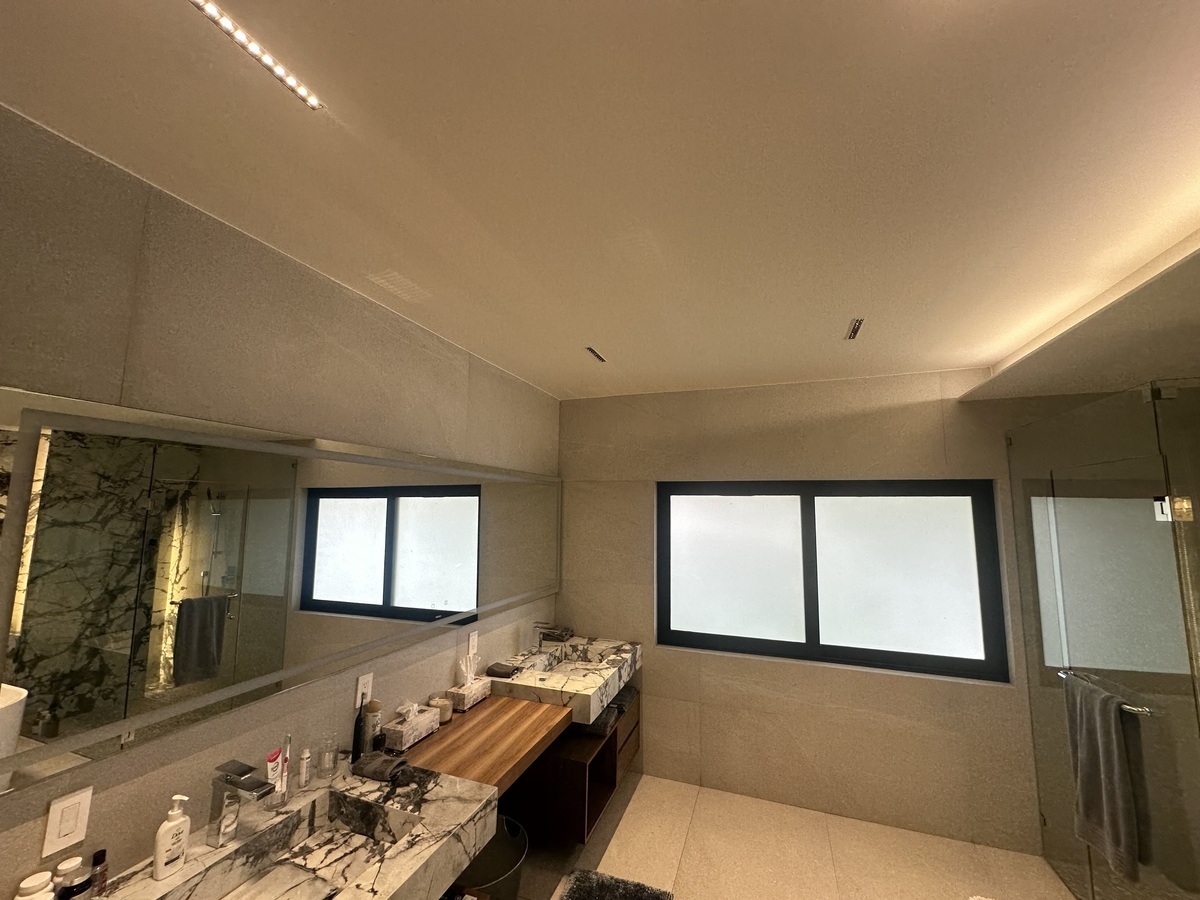 Acabados en mármoles y canteras de importación, carpinterías en nogal, cajillos con iluminación indirecta, iluminación centralizada y maderas de ingeniería de alta calidad. Cocina equipada con doble refrigerador, hornos, grifería, estufa y filtro de la marca Wolf en acero inoxidable. Aire acondicionado en todas las habitaciones.