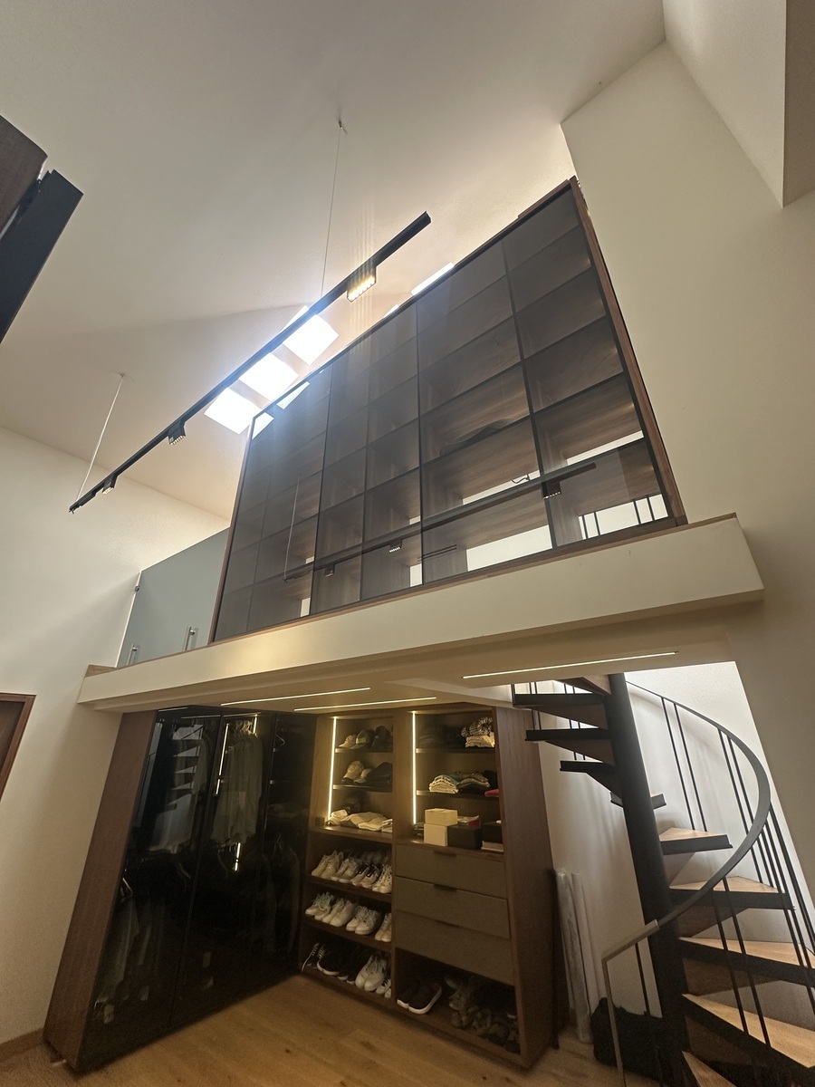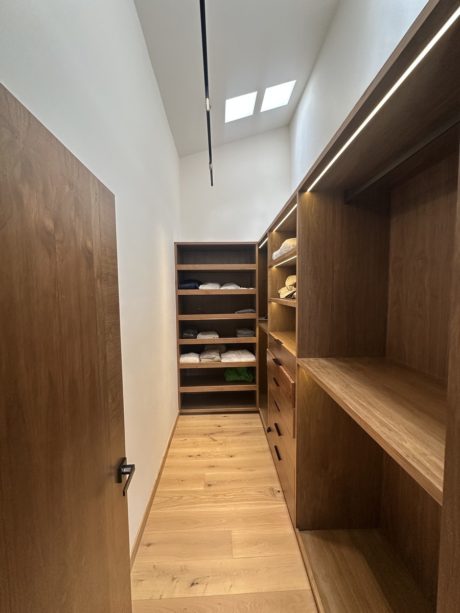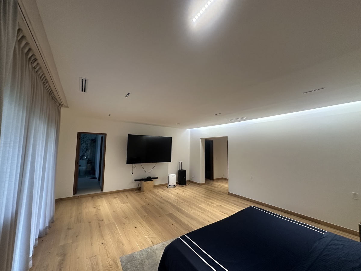 - master bedroom with balcony, full bathroom, and spacious double height walk-in closet