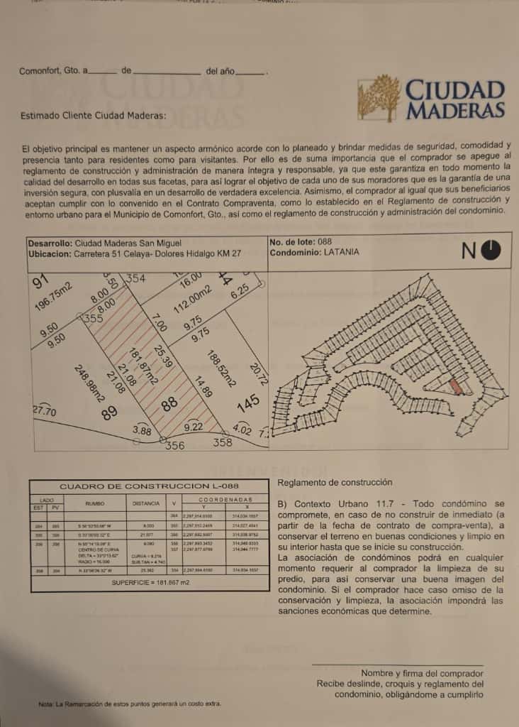 Transfer of land located in Cd. Maderas San Miguel de Allende. Clubhouse, tennis court, barbecue area, bathrooms, children's play area, fut 7 field, swimming pools & basketball court. Located just 15 minutes from San Miguel de Allende towards Celaya. It already has water connection.Traspaso de terreno ubicado en Cd. Maderas San Miguel de Allende. Casa club, cancha de tenis, área de asador, baños, área de juegos infantiles, cancha de fut 7, albercas & cancha de basquetbol. Ubicado a sólo 15 minutos de San Miguel de Allende en dirección a Celaya. Cuenta ya con conexión de agua.