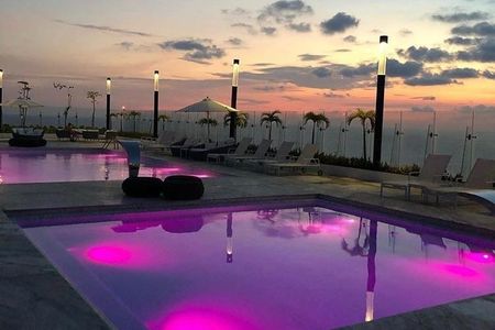 el condominio cuenta con: Elevador, seguridad, restaurant, spa, gym, ludoteca, cancha de padel, sky pool, albercas y acceso a playa.