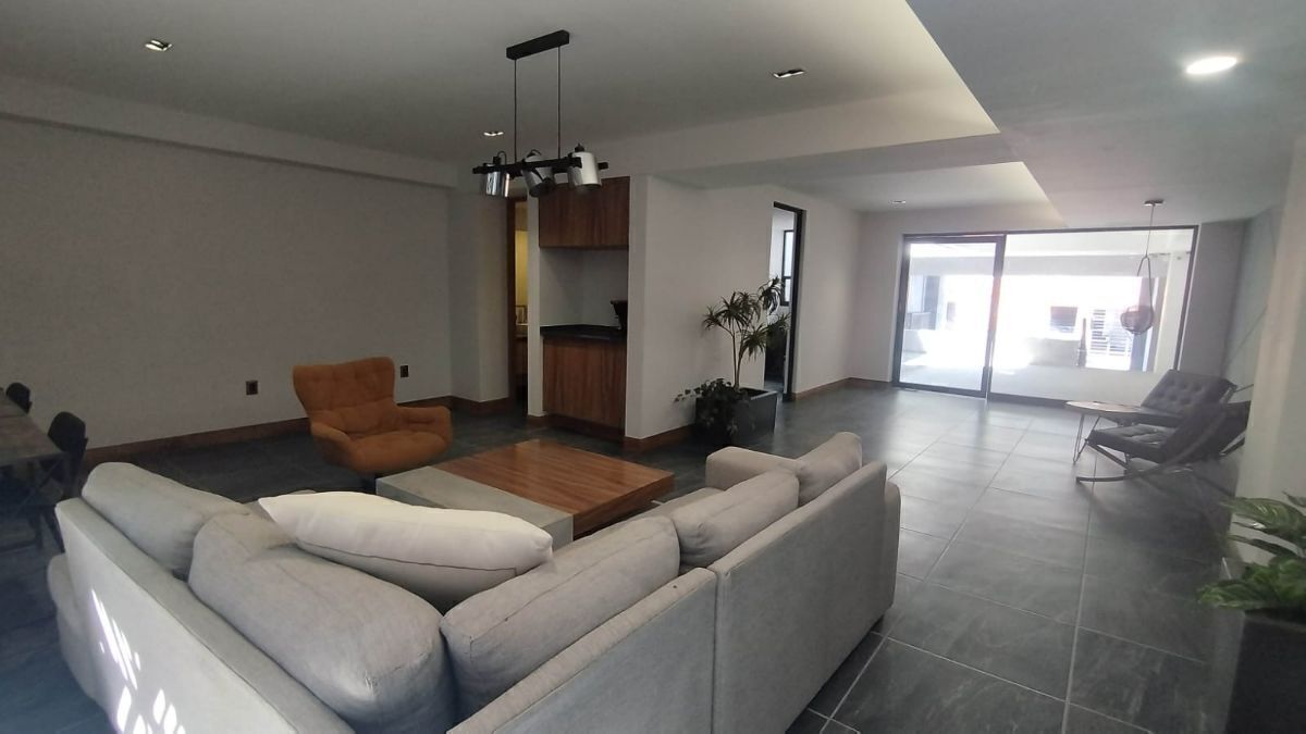 Departamentos de LUJO, con caseta de vigilancia, lobby, recibidor, paquetería ecommerce, cafetería, área de trabajo compartido con baño.