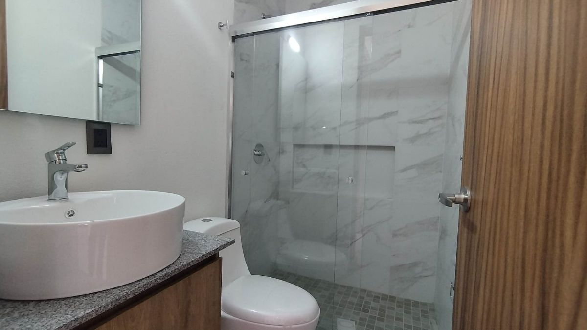 Dos recamaras y dos baños completos, área social de sala-comedor-cocina.