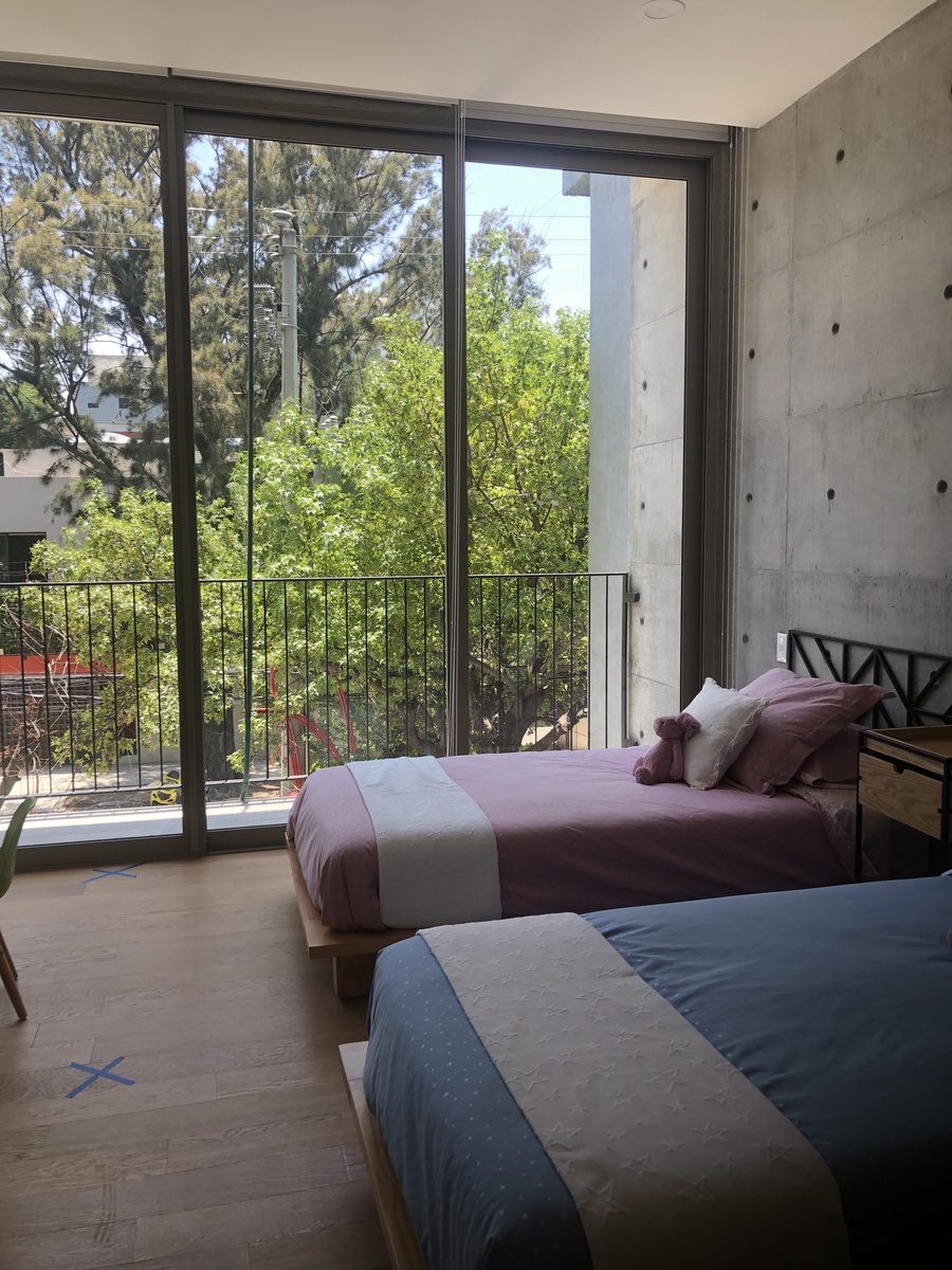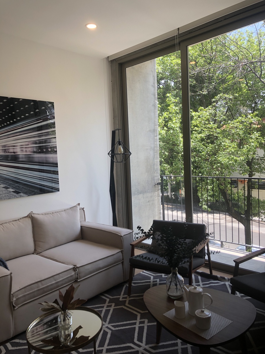 Muy Iluminado y funcional. Estancia-comedor con balcón, cocina integral abierta con cubierta de granito, 2 recámaras con clóset y balcón. 2 baños, 2 estacionamientos 90m2 y bodega.