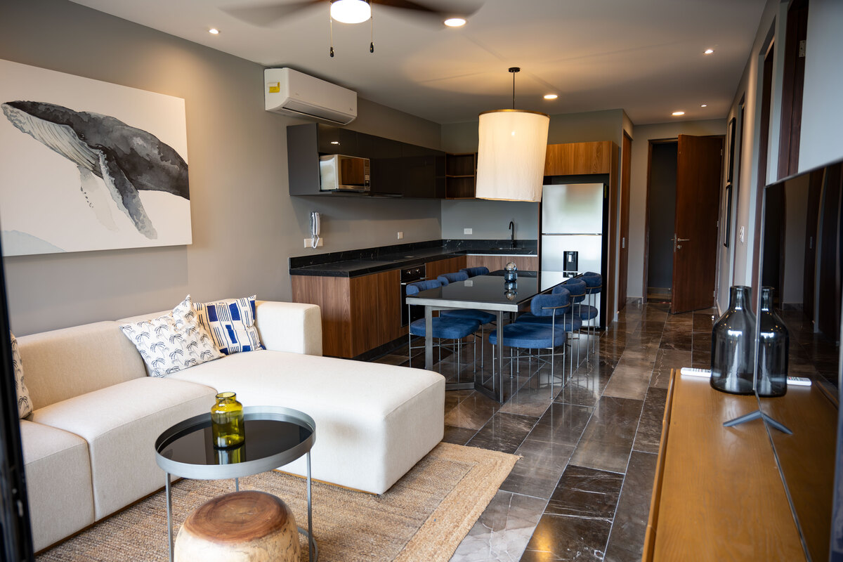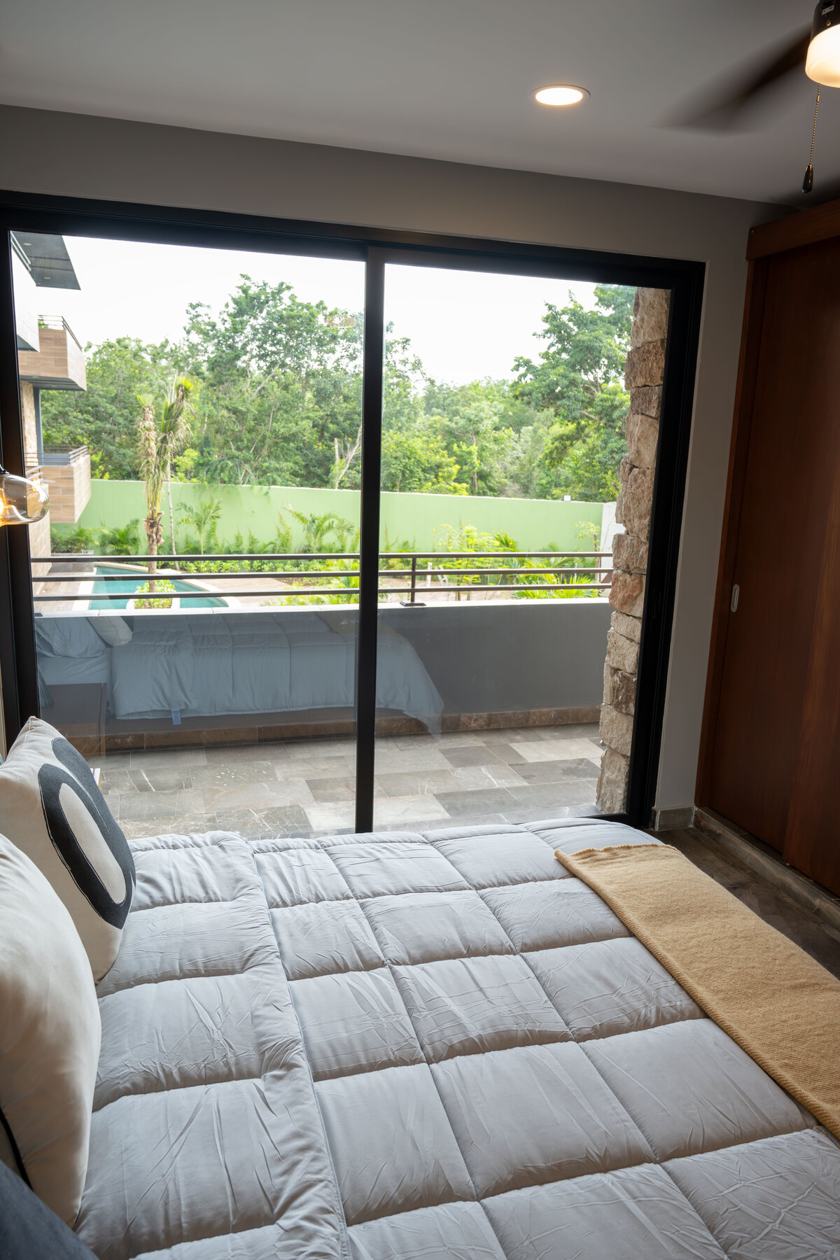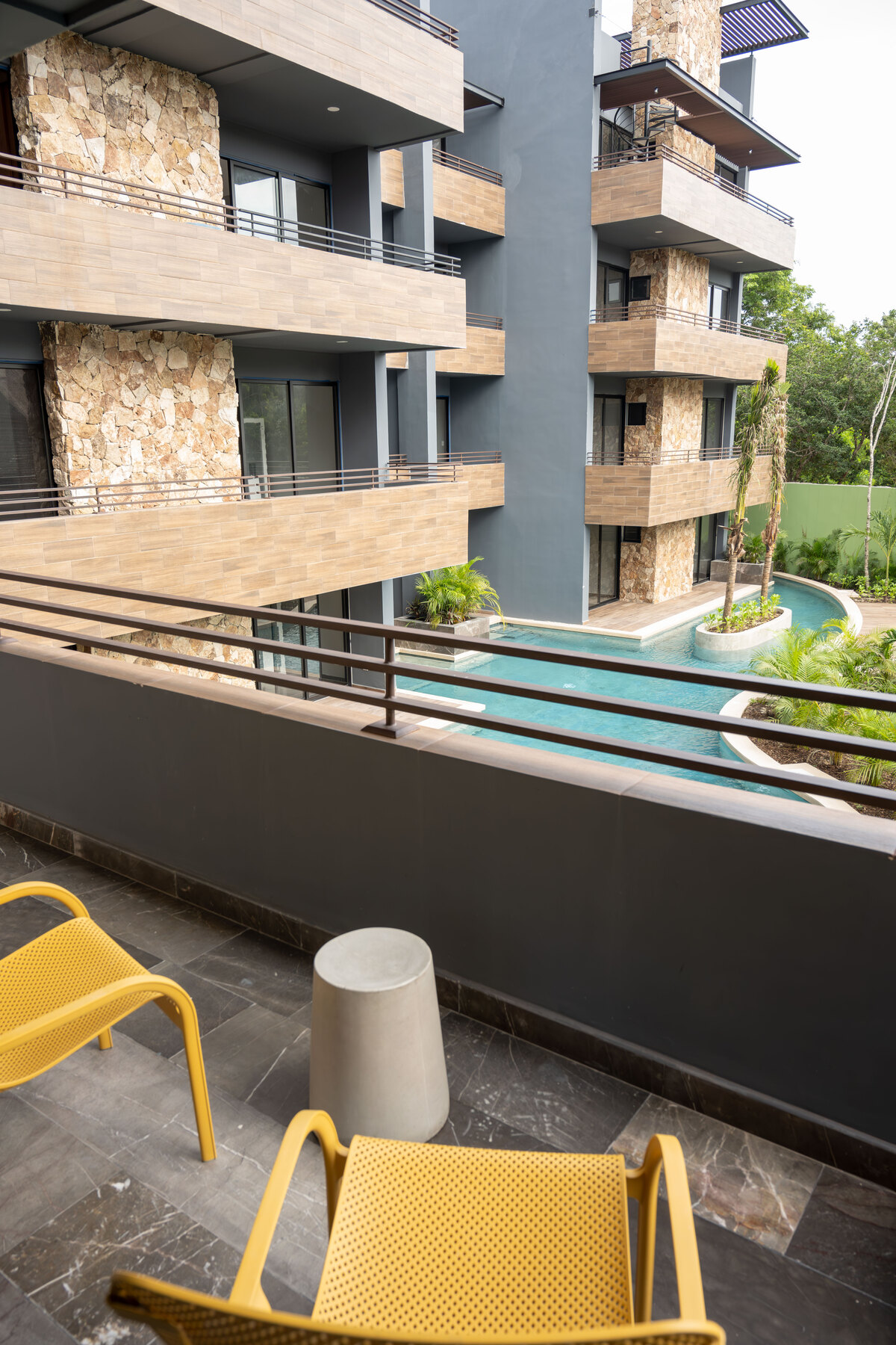 It is one of the most exclusive and luxurious developments in Aldea Zama, featuring 56 apartments and a design that blends black tones with natural materials, offering stunning jungle views.
