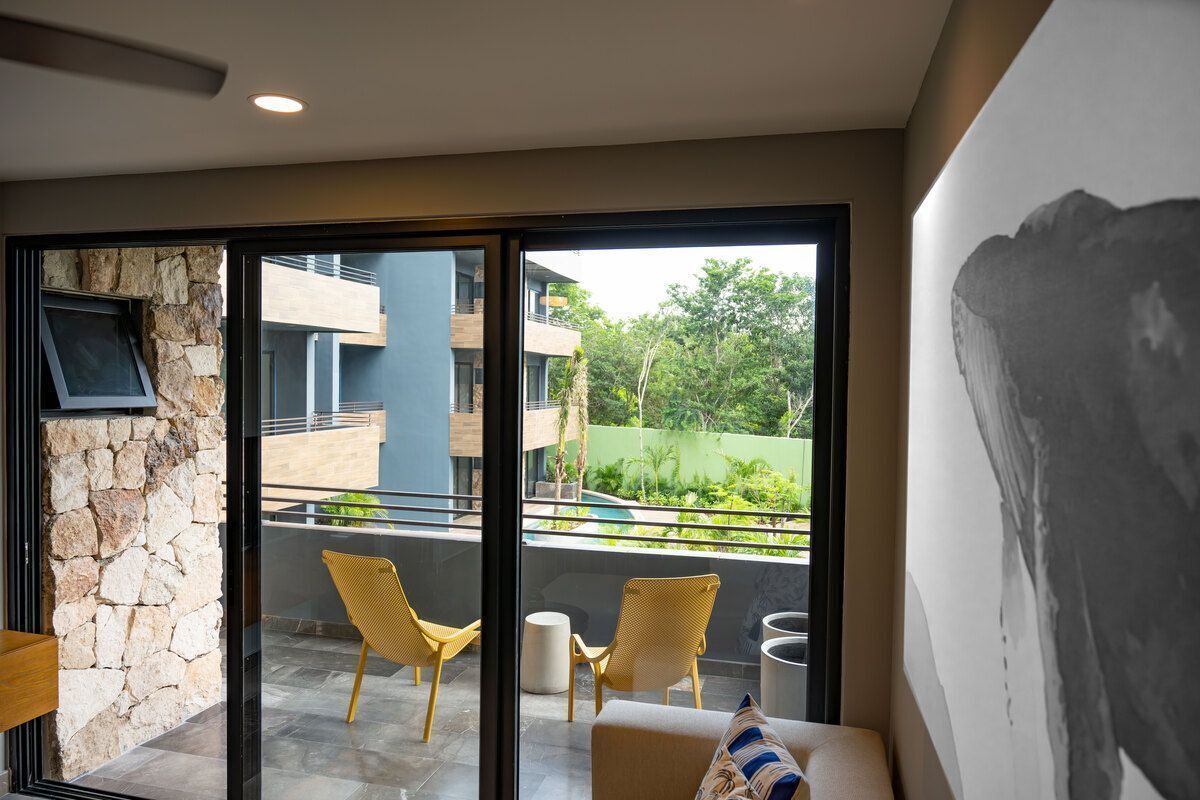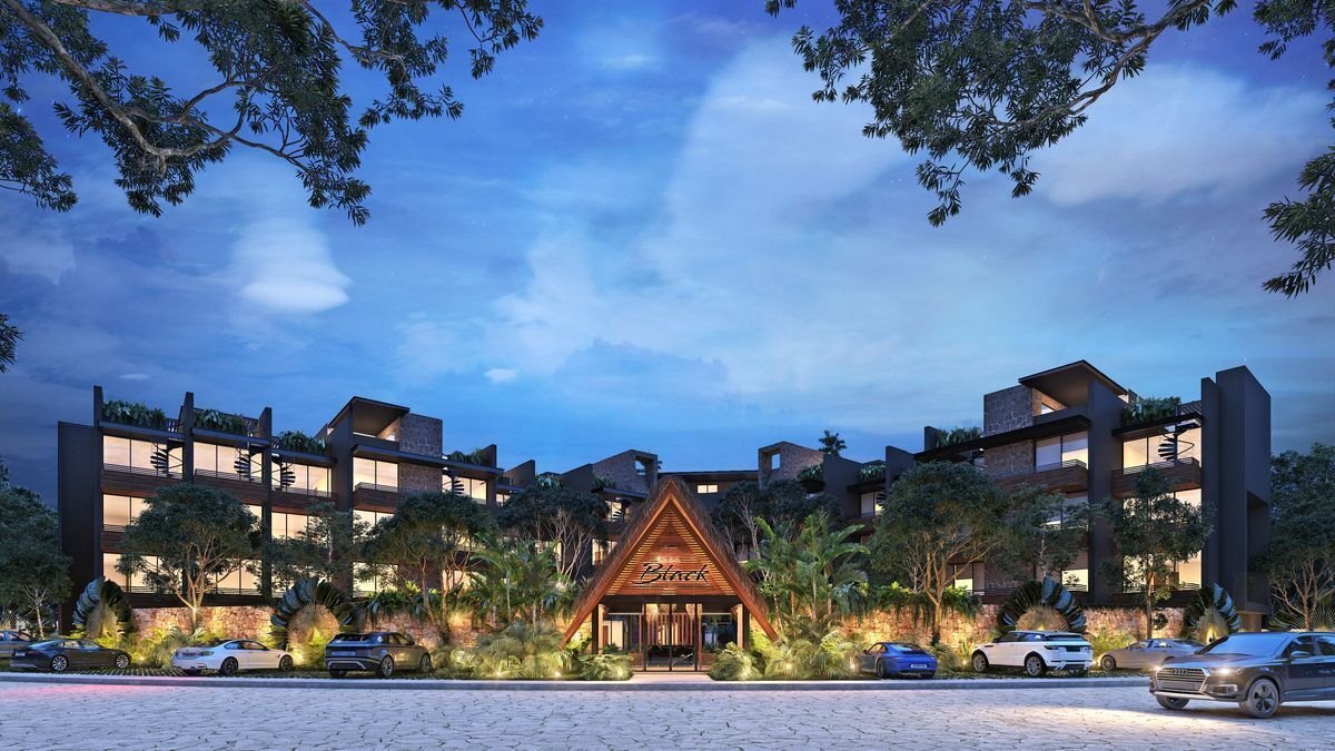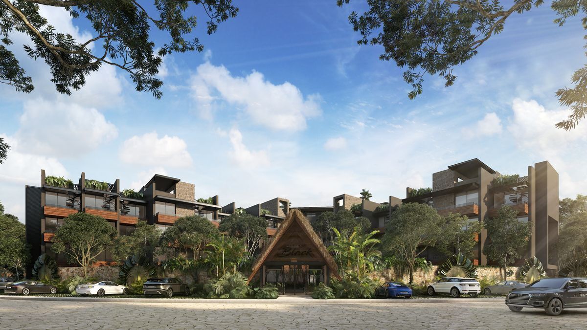 It is one of the most exclusive and luxurious developments in Aldea Zama, featuring 56 apartments and a design that blends black tones with natural materials, offering stunning jungle views.