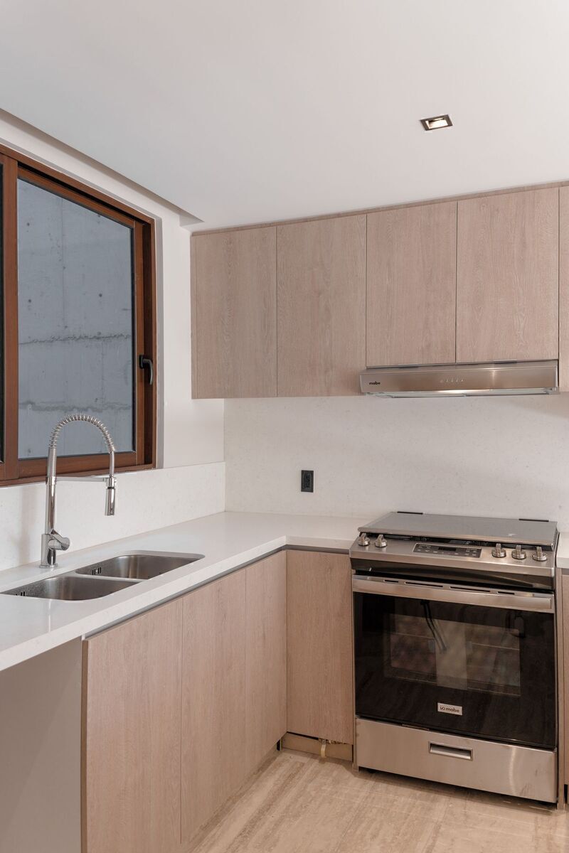 Cocina integral hecha por London and Bosh y con cubierta de cuarzo.