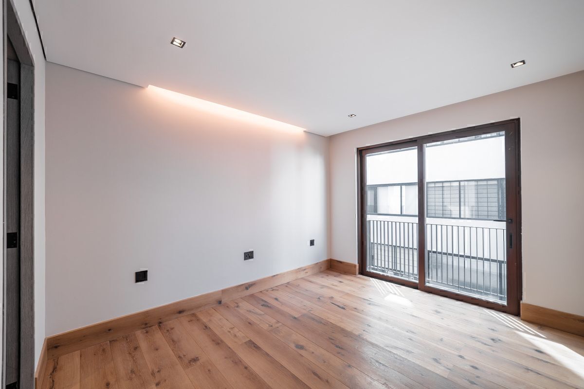 Luxury finishes, built-in closets and furniture, marble floors in the living-dining room, wooden floors in the bedrooms. The kitchen countertop is made of white quartz.