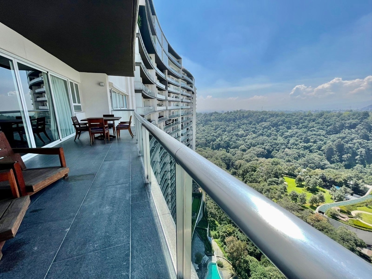 Living-dining room that opens to a terrace with a view of volcanoes. Kitchen with breakfast area. Laundry and service room. 4 cars, impeccable finishes. Elevator directly to the apartment. Includes the club house of Parque Reforma which has sports classes, courts, pools, spa, beauty salon, game rooms, garden with barbecues, restaurant with pizzeria, children's library, youth and adult lounge, landscaped walkways, areas for children, area for drivers, strict security, jogging track and soccer field of Cumbres.