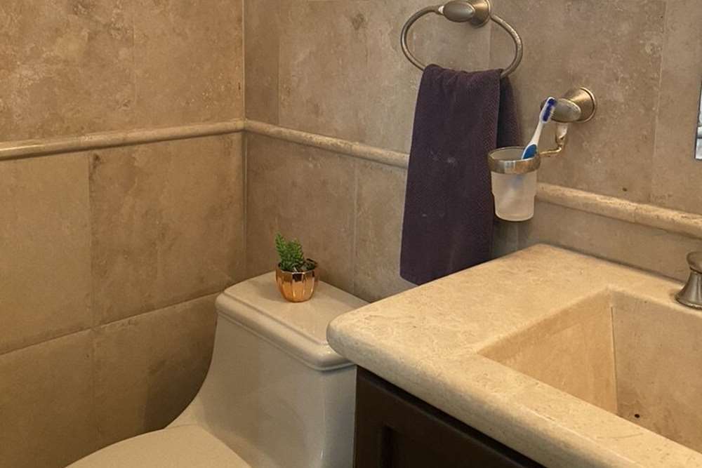 Casa incluye muchas características de buen gusto, como pisos de mármol, encimeras de mármol, puertas de ducha de vidrio templado, closets de madera hechos a mano, una hermosa escalera con baranda de vidrio y una sala de estar en el segundo nivel, que podría usarse como oficina.