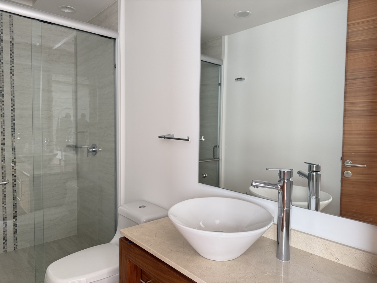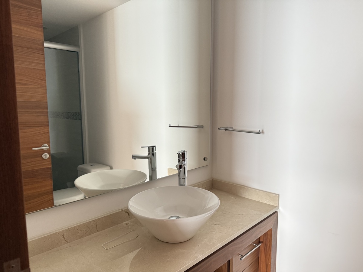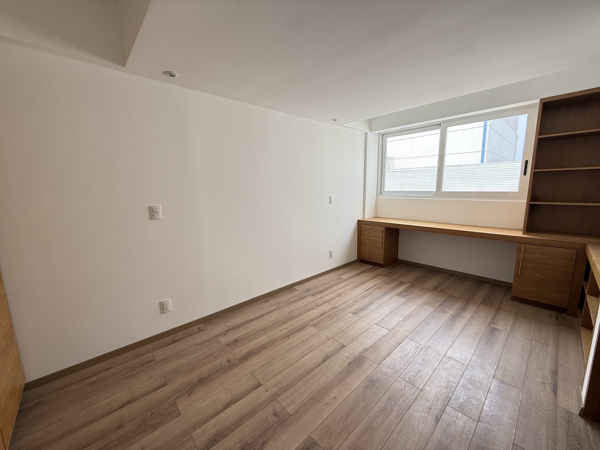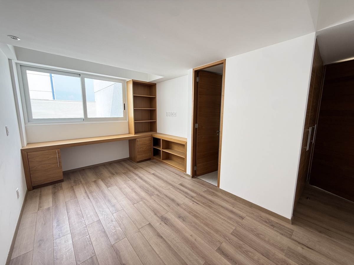 Excelentes acabados , mármol en Baños, canceles de cristal templado en Baños, ventanería de PVC, preparación para aires acondicionados, cocina en granito oscuro y acabados con madera .
