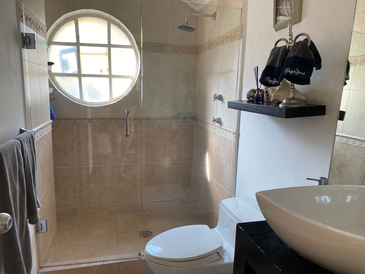 Dos baños completos, uno en el nivel de las recámaras secundarias y el privado de la recámara principal