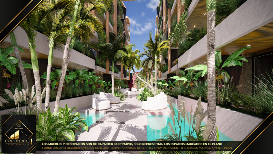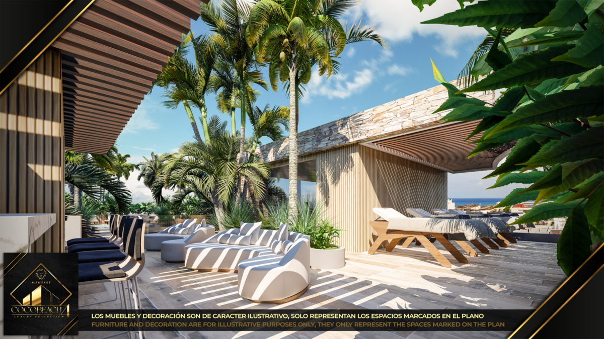 Success is often measured by how your environment perceives you, and our environment is a Menesse zone, with more than 24 projects demonstrating and providing certainty and confidence to our investors. That is why "Coco Beach 4" comes to add and complete our range of luxury, in the most attractive area of Playa del Carmen, where you can enjoy top-notch gastronomy and easy access to the beach just steps away.