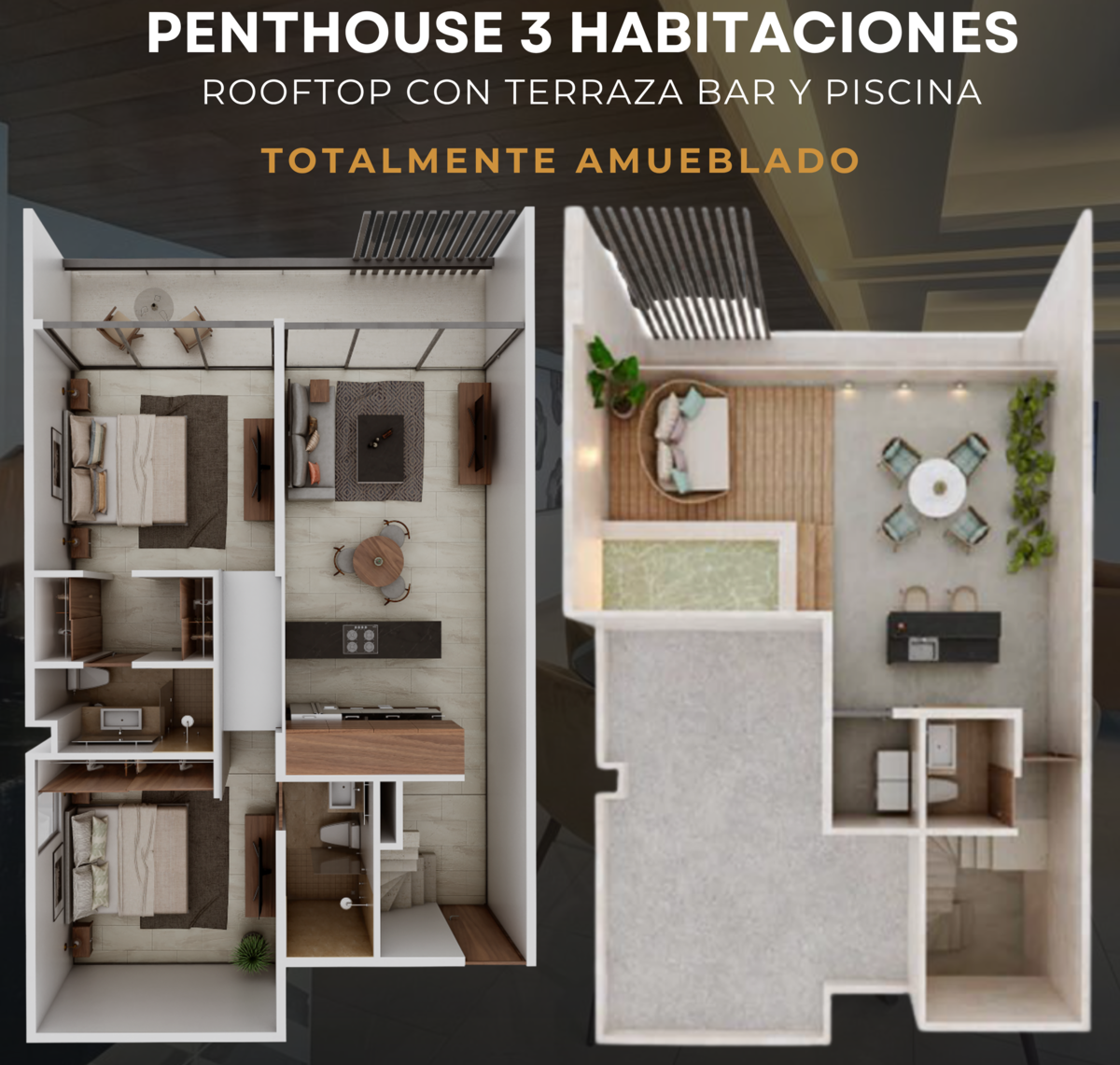 *This is a render that may vary from the actual result.*¡Vive con estilo y comodidad en la mejor zona de Temozón Norte! Este espectacular Penthouse en Monné está listo para recibirte con todo lo que necesitas para una vida de lujo.