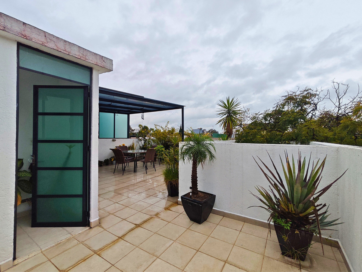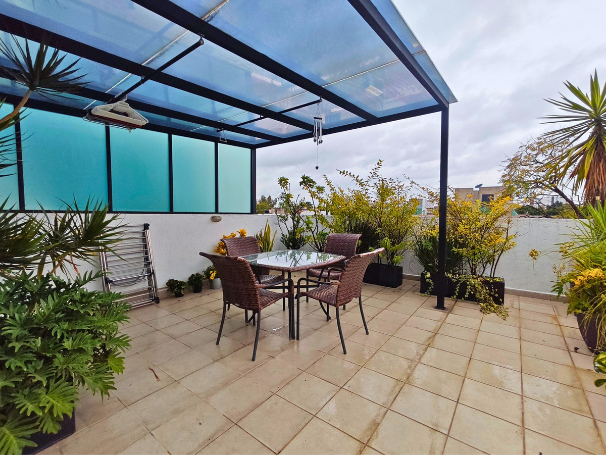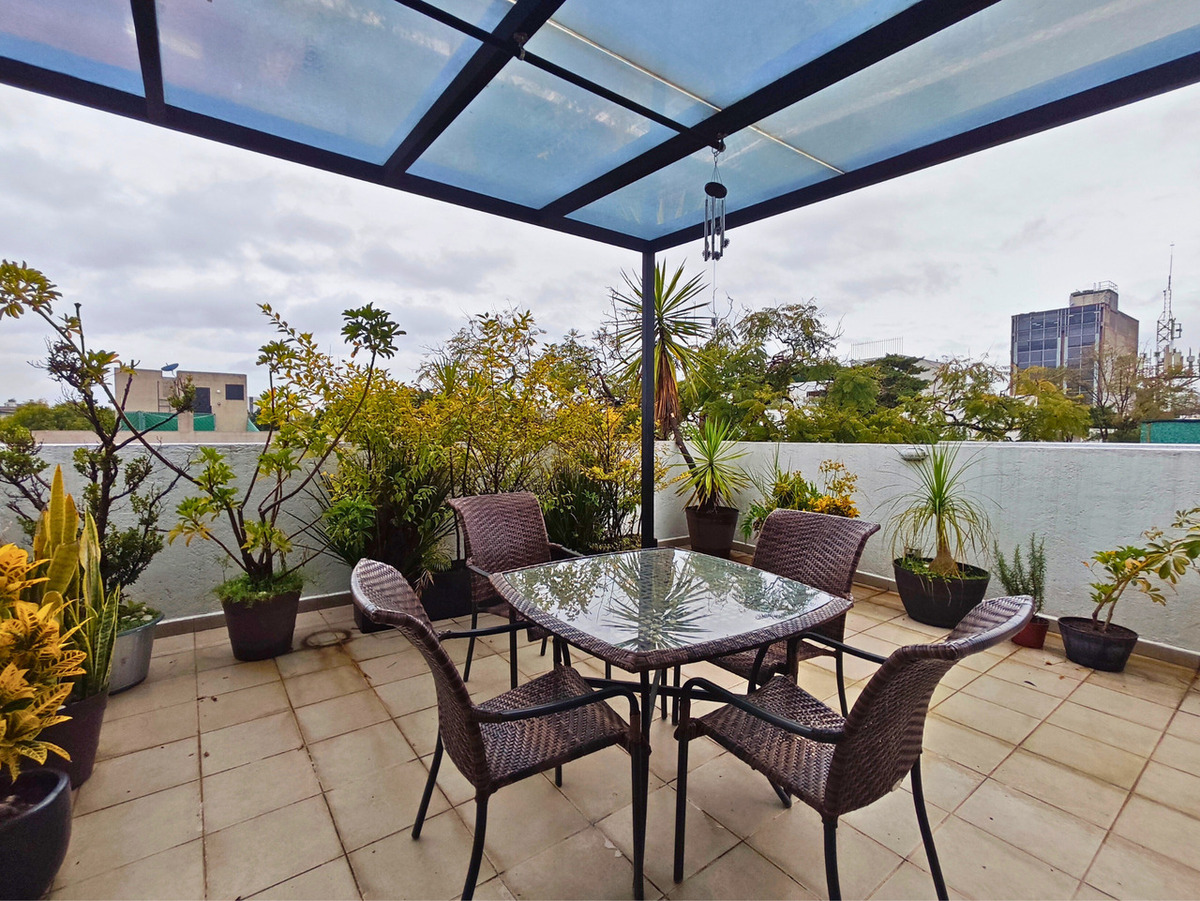 Roof Garden privado techado parcialmente, con medio baño y área de lavado