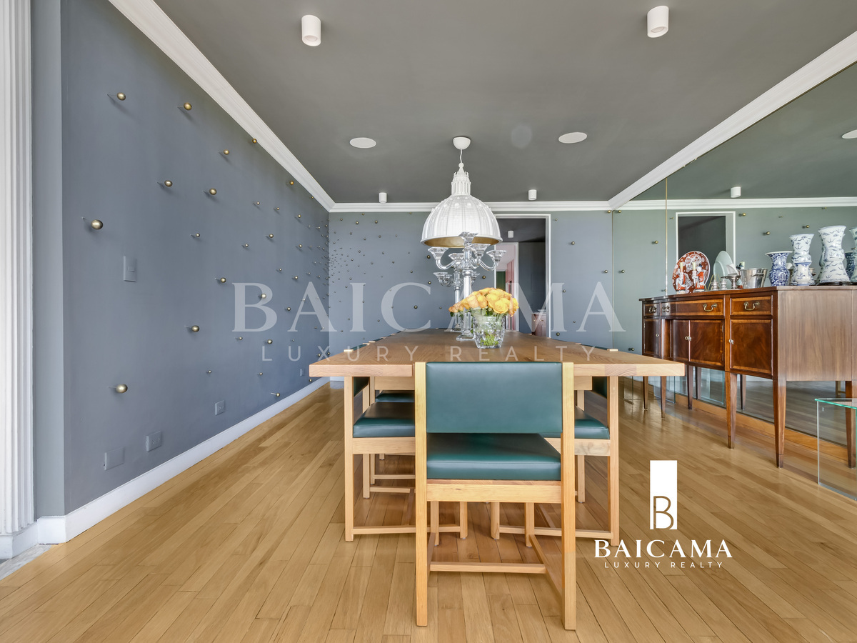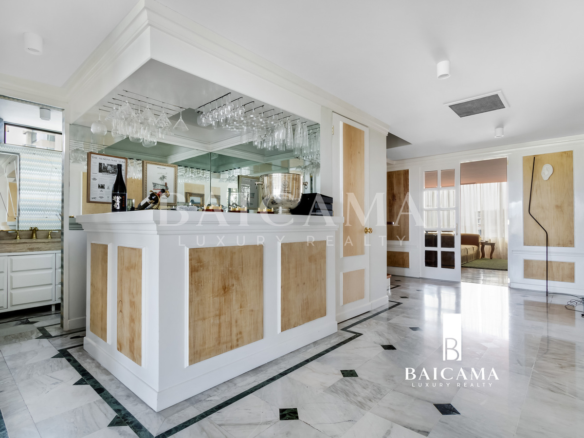Upon entering the apartment, directly from the elevator, the spectacular view frames all the social areas: living room, dining room, bar, and an incredible covered terrace with outdoor living and dining areas.