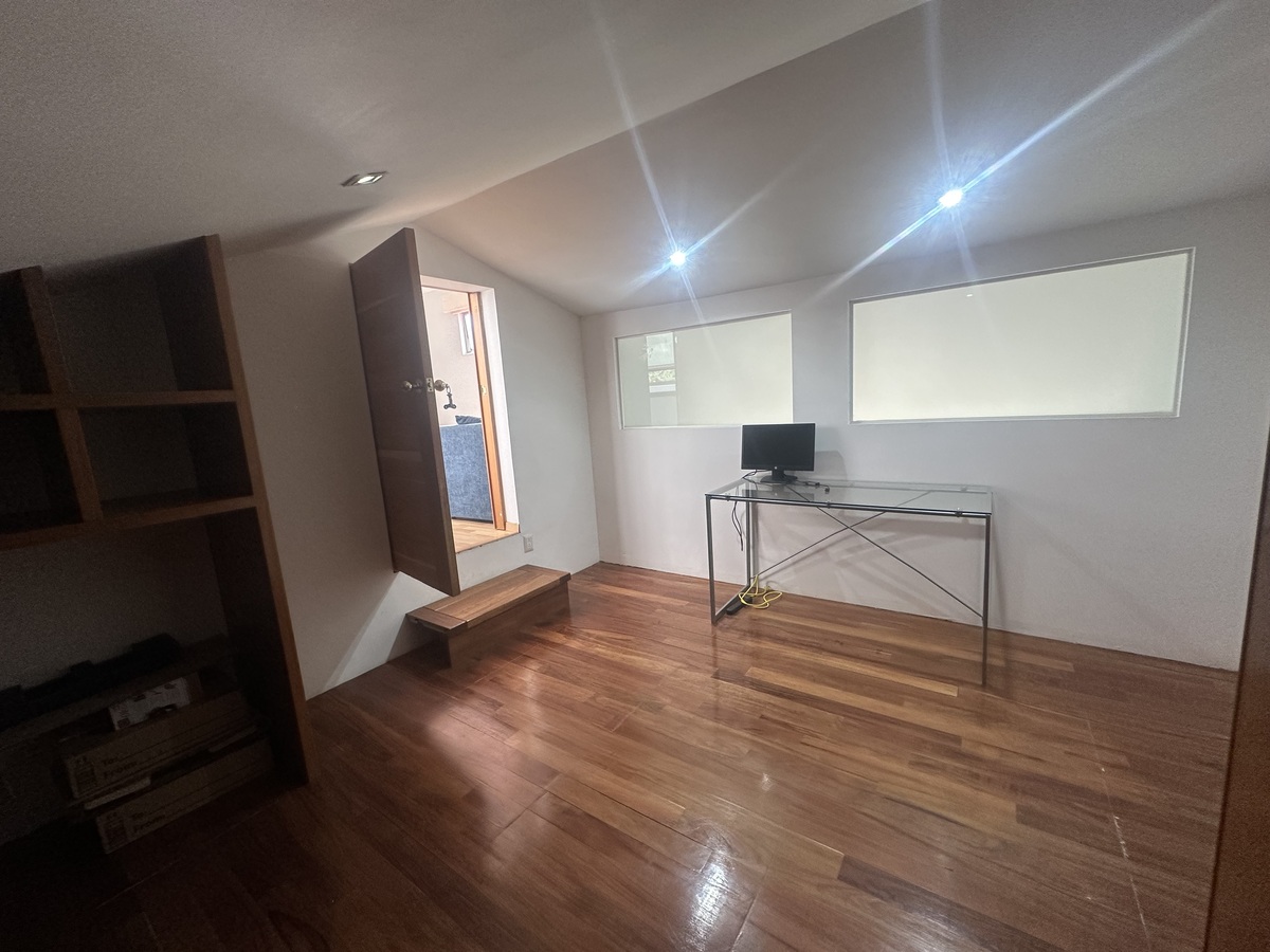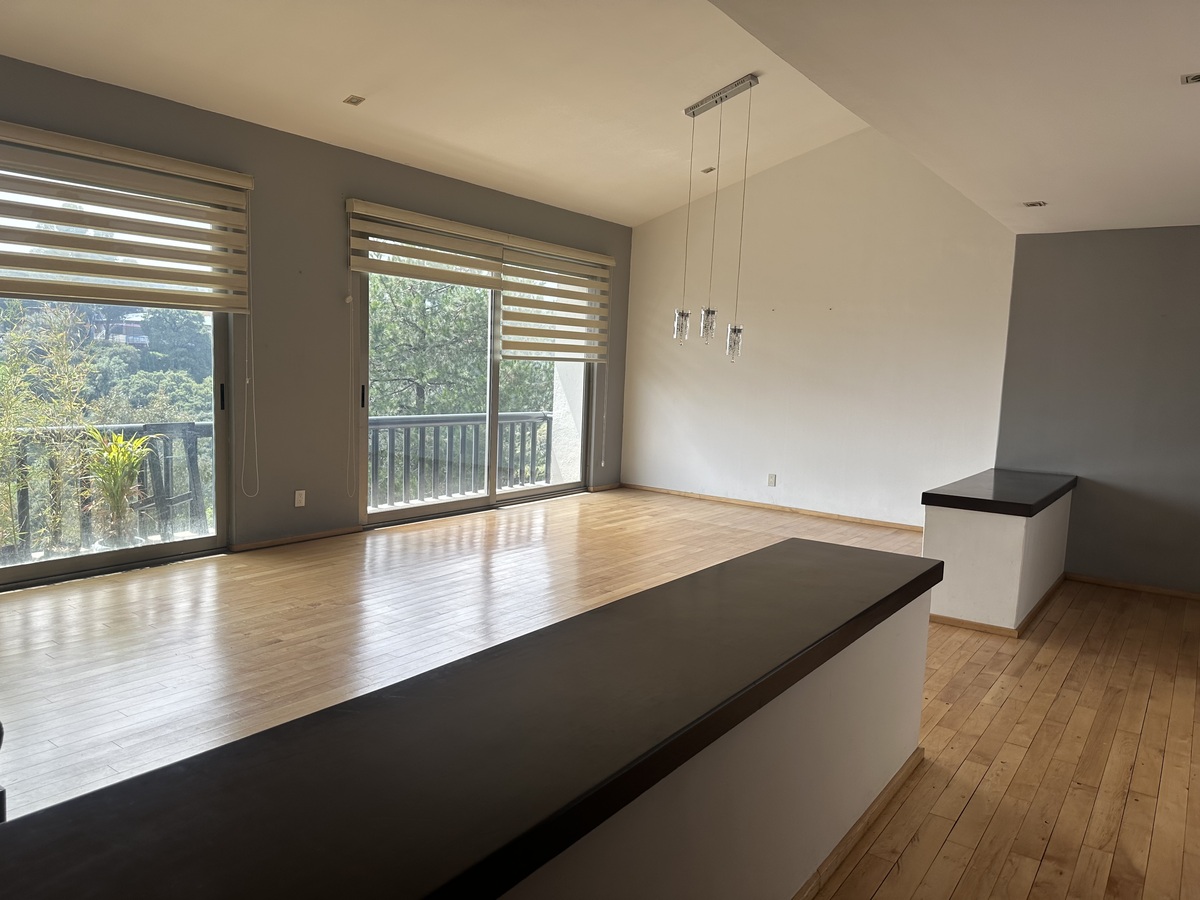 Penthouse con balcón y hermosa vista verde, cuenta con 250 m2 distribuidos en 2 niveles 3 recámaras con baño, 2 con vestidor la 3ra con closet, sala comedor con mucha luz natural y balcón, baño de visitas,cocina integral, family room, estudio u oficina, cuarto de servicio con baño, área de lavado, 3 lugares de estacionamiento y bodega.