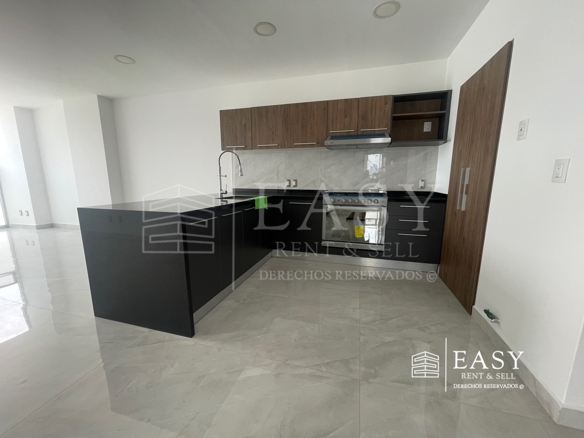 Amplia estancia con excelente iluminación natural, integrada a una cocina abierta de estilo contemporáneo.