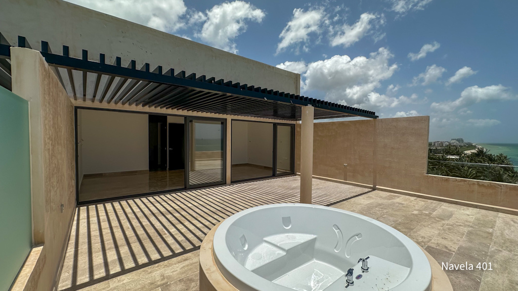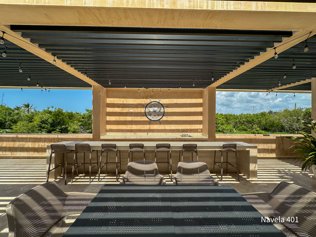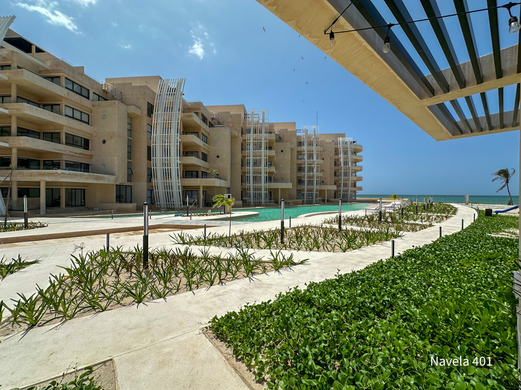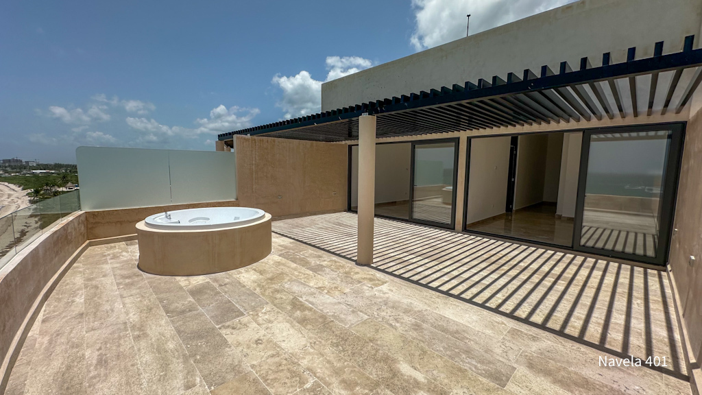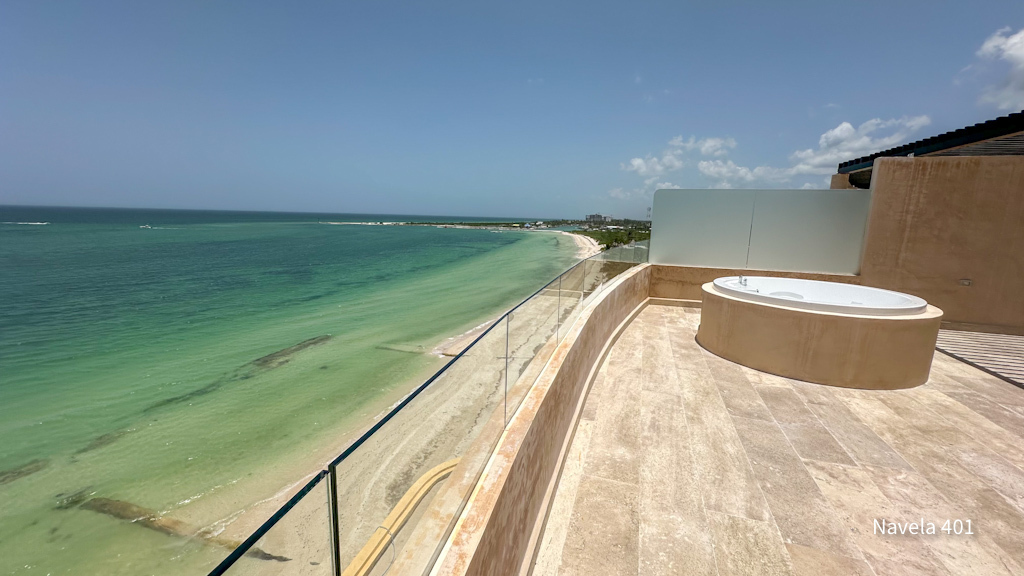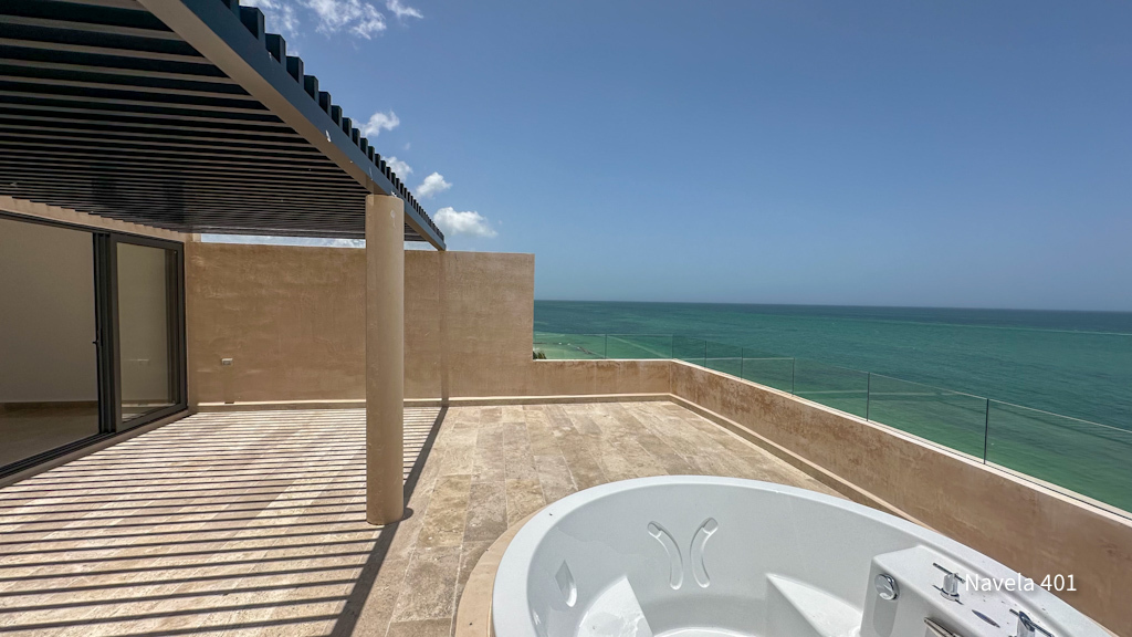Ready for immediate delivery.Penthouse de dos plantas frente al mar, en Telchac Puerto, en el kilómetro 35.6 dentro de Kinuh, en el desarrollo llamado Navela, junto al hotel Reef de Yucatán.