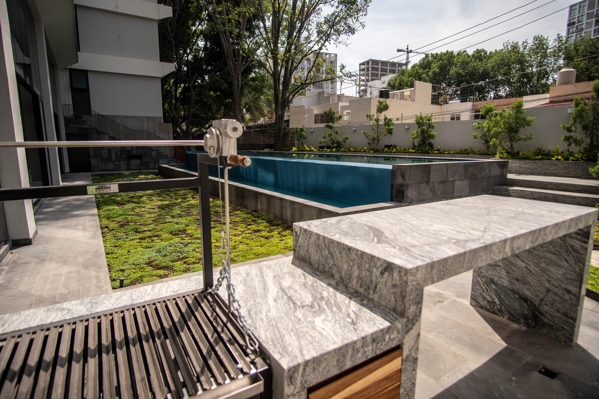 Rooftop con área de bar con barra, cuarto de servicio con baño completo, 1/2 baño, sala, comedor , terraza y elevador