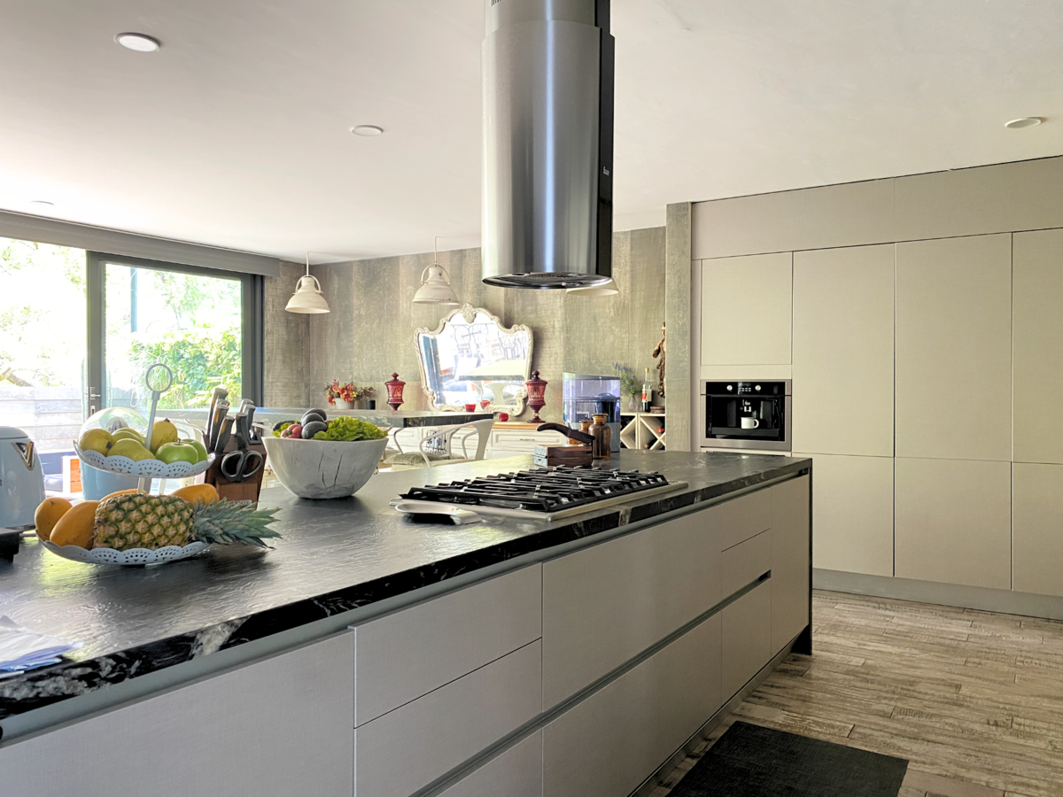 The kitchen is open and fully equipped with the best appliances. General Electric refrigerator, wine cooler, built-in coffee maker, VIKING stove with 6 burners, oven, and microwave. The dream of any high gastronomy lover.