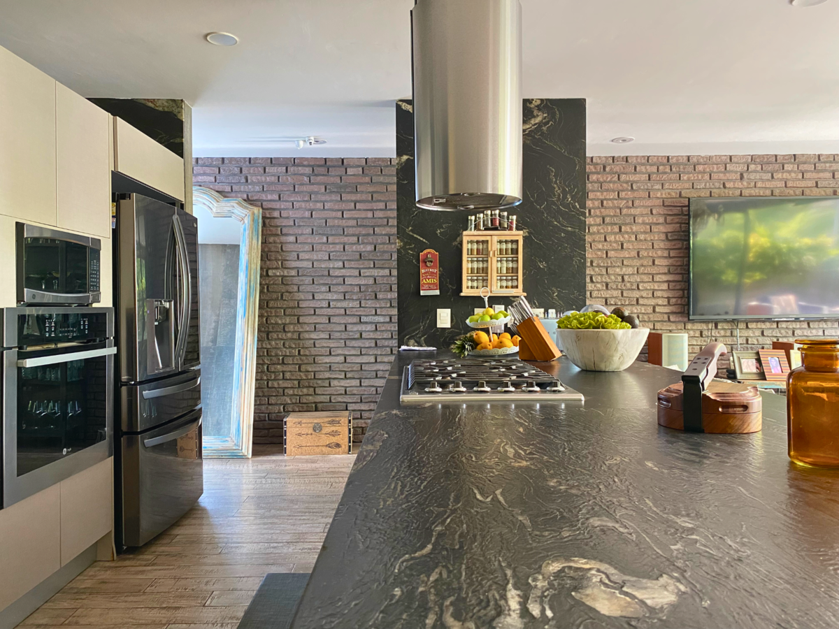 La cocina es abierta y está completamente equipada con los mejores electrodomésticos. Frigorífico General Electric, Enfriador de vinos, cafetera empotrada, estufa VIKING de 6 fuegos, horno y microondas. El sueño de cualquier amante de la alta gastronomía.