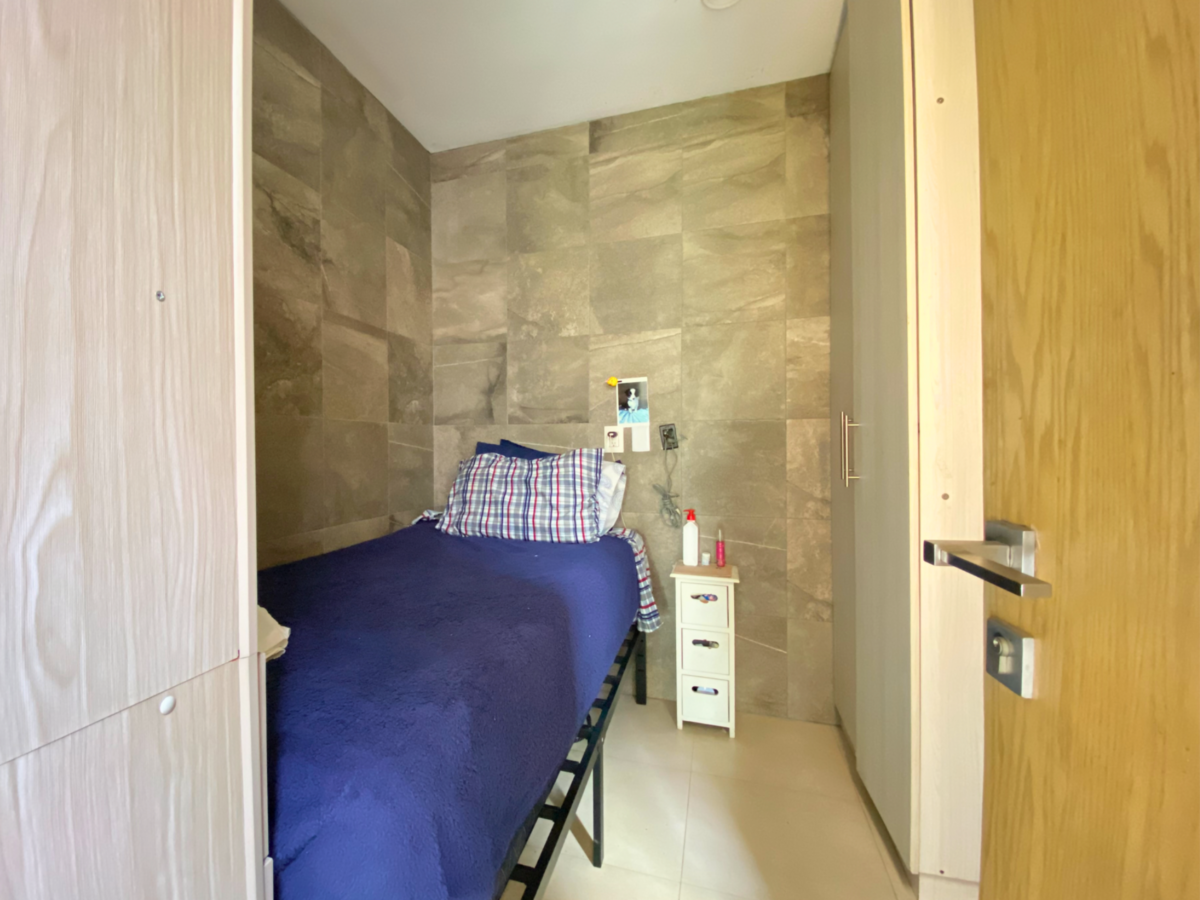 En la parte posterior del departamento, se encuentra el baño de visitas y las dos recámaras.