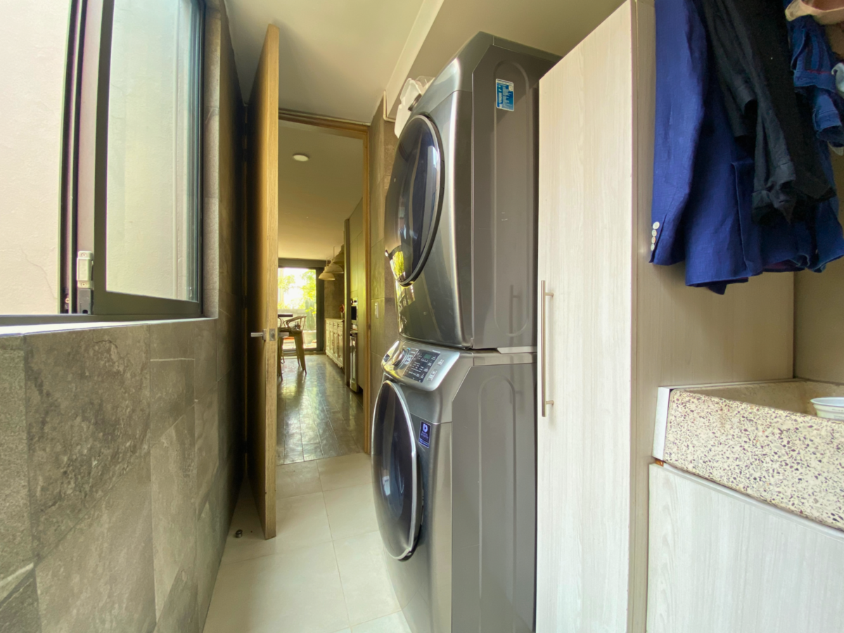 Desde la cocina hay un acceso al cuarto de lavado y al cuarto de servicio con su propio baño. Todos los espacios muy iluminados y con ventilación natural.