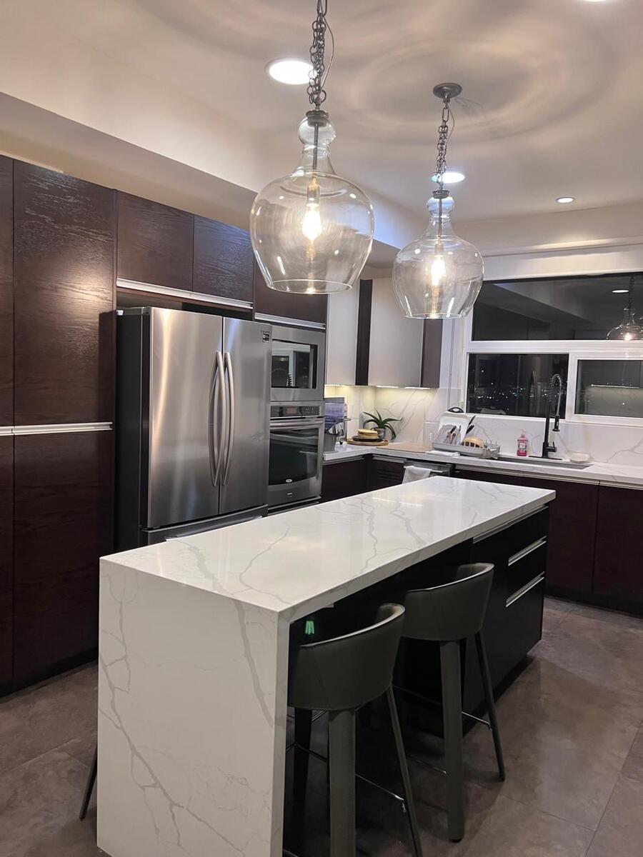 La cocina integral está equipada con línea blanca AAA, ofrece un diseño moderno y funcional.