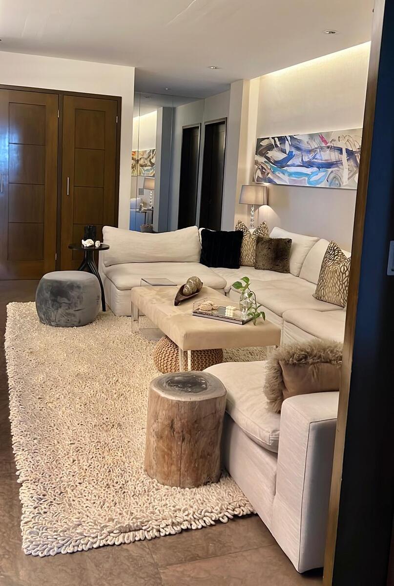El área social incluye una sala de estar y comedor con chimenea, perfecta para recibir visitas o disfrutar de momentos en familia.