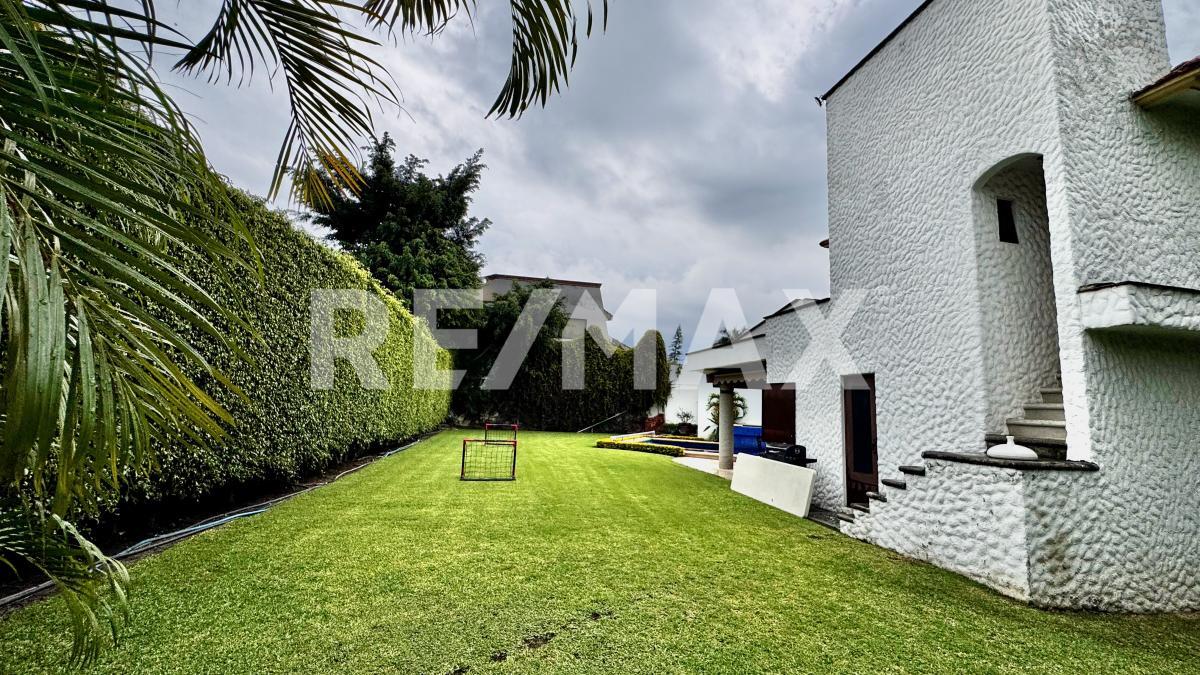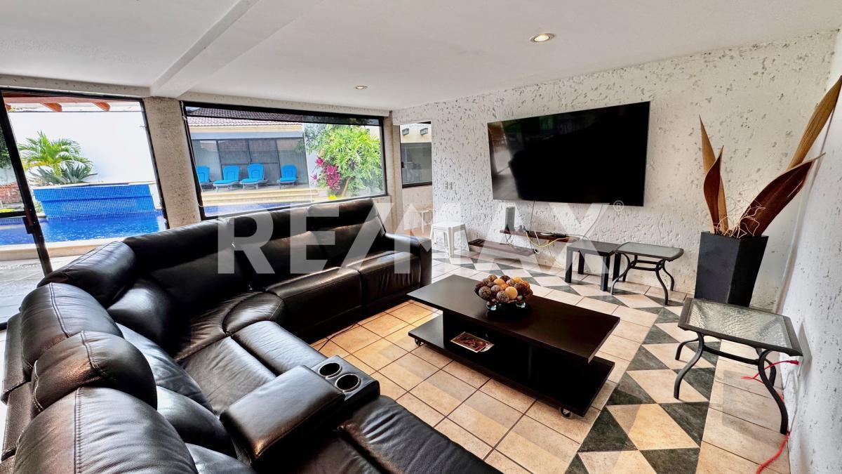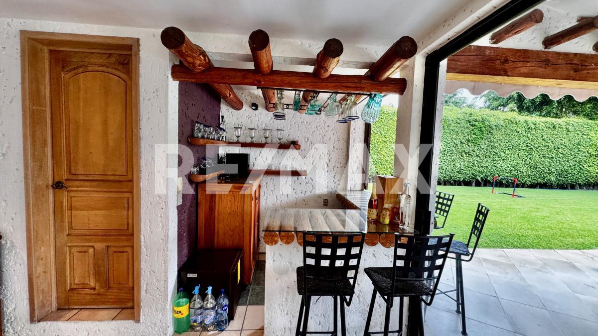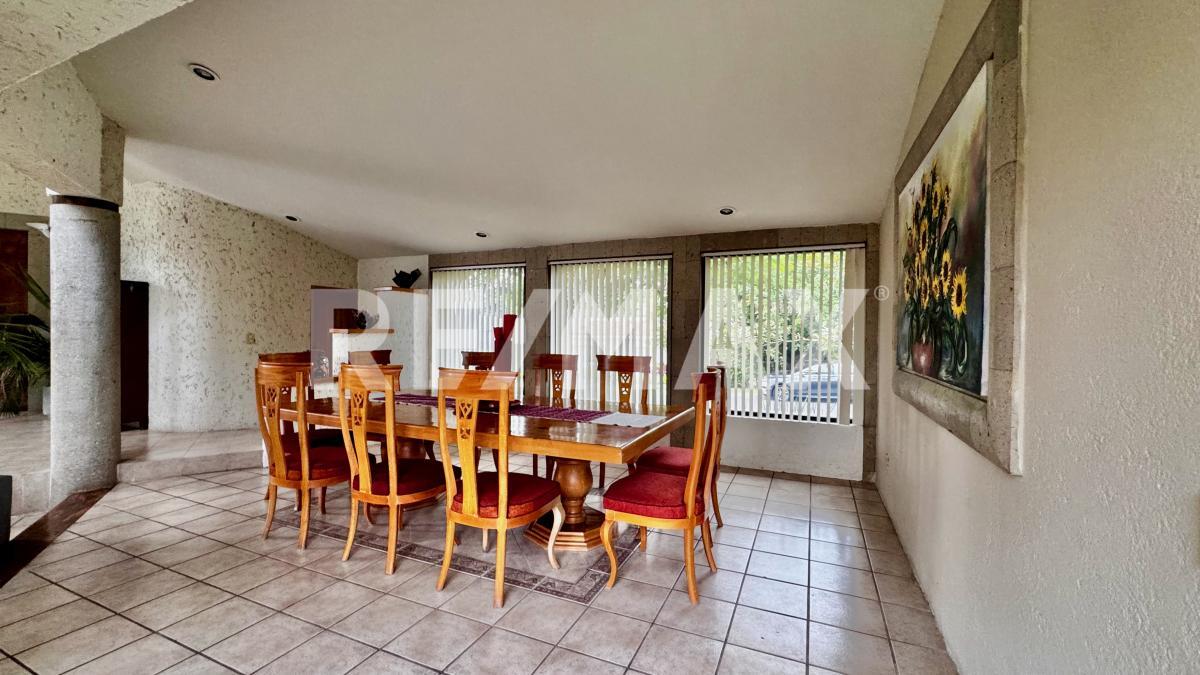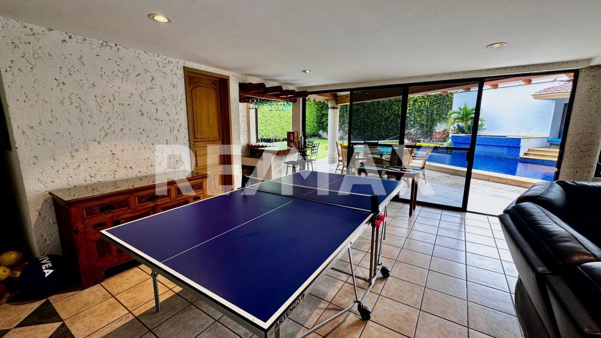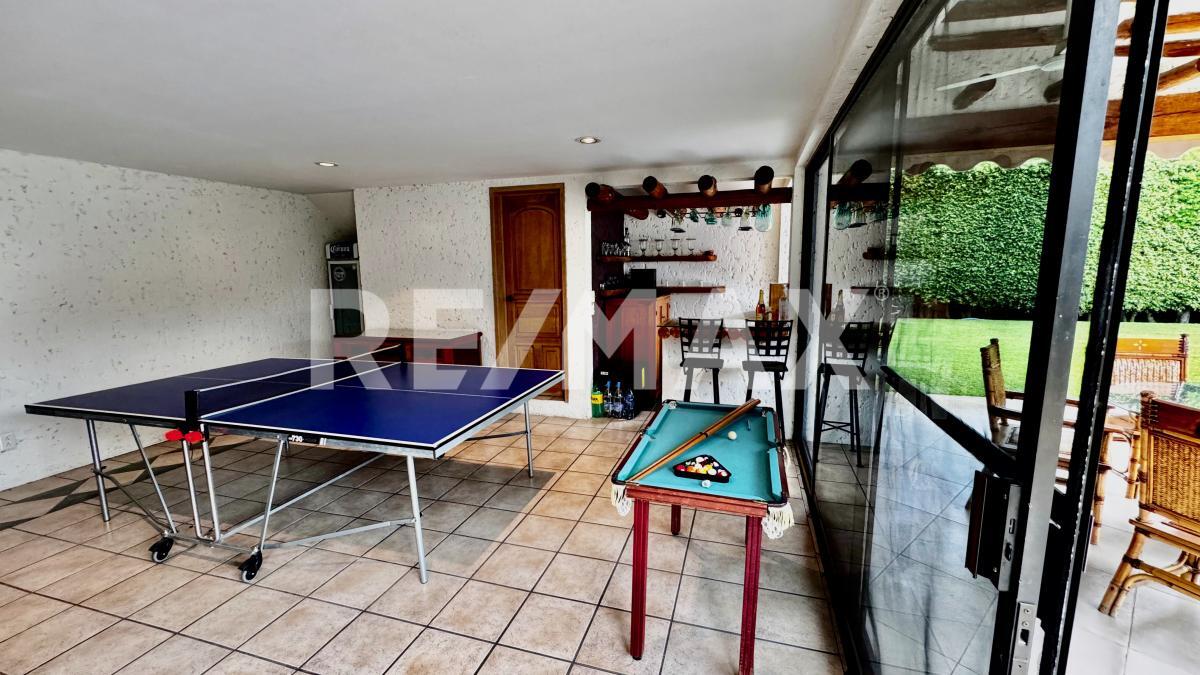 Distribuida en dos niveles, la propiedad cuenta en el primer piso con una elegante y amplia estancia, comedor funcional, cocina con antecomedor y un salón de usos múltiples equipado con área de TV, mesas de juegos y un bar con medio baño, todo conectado a una maravillosa terraza y a la zona de alberca, con cascada, jacuzzi que se calientan por fotoceldas o caldera y jardín perimetral, es ideal para reuniones familiares, celebraciones y momentos inolvidables con amigos.