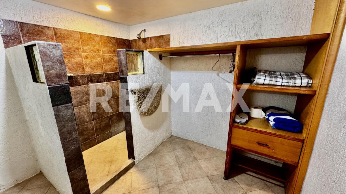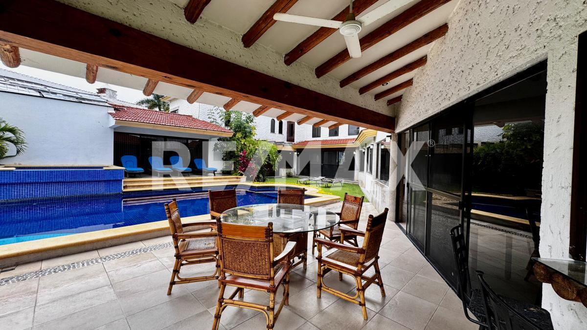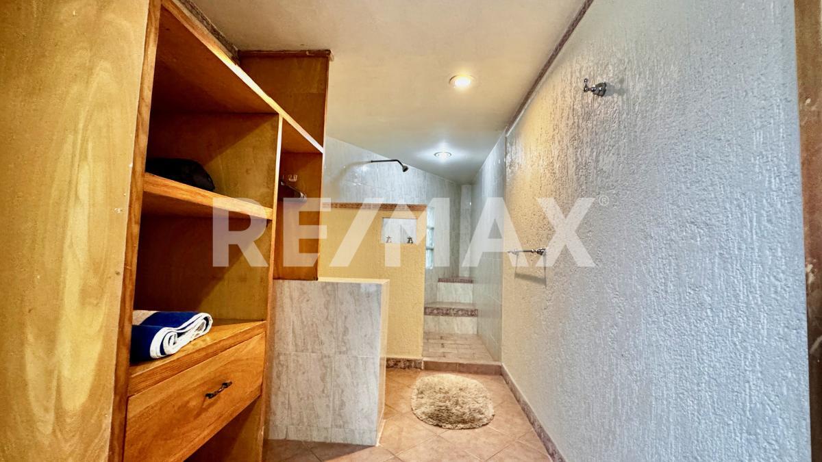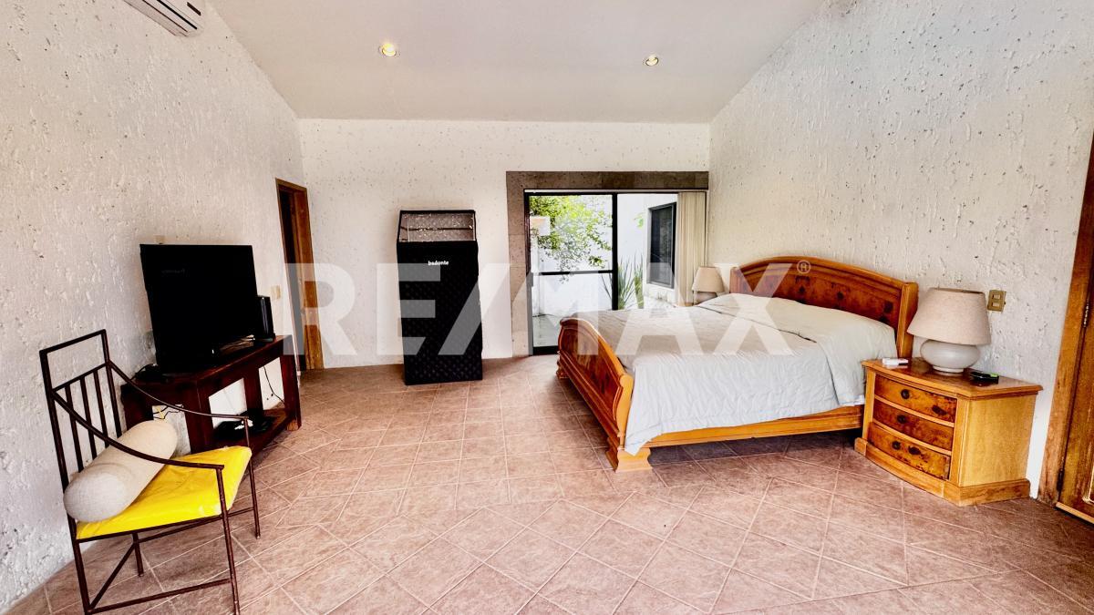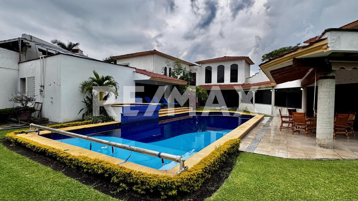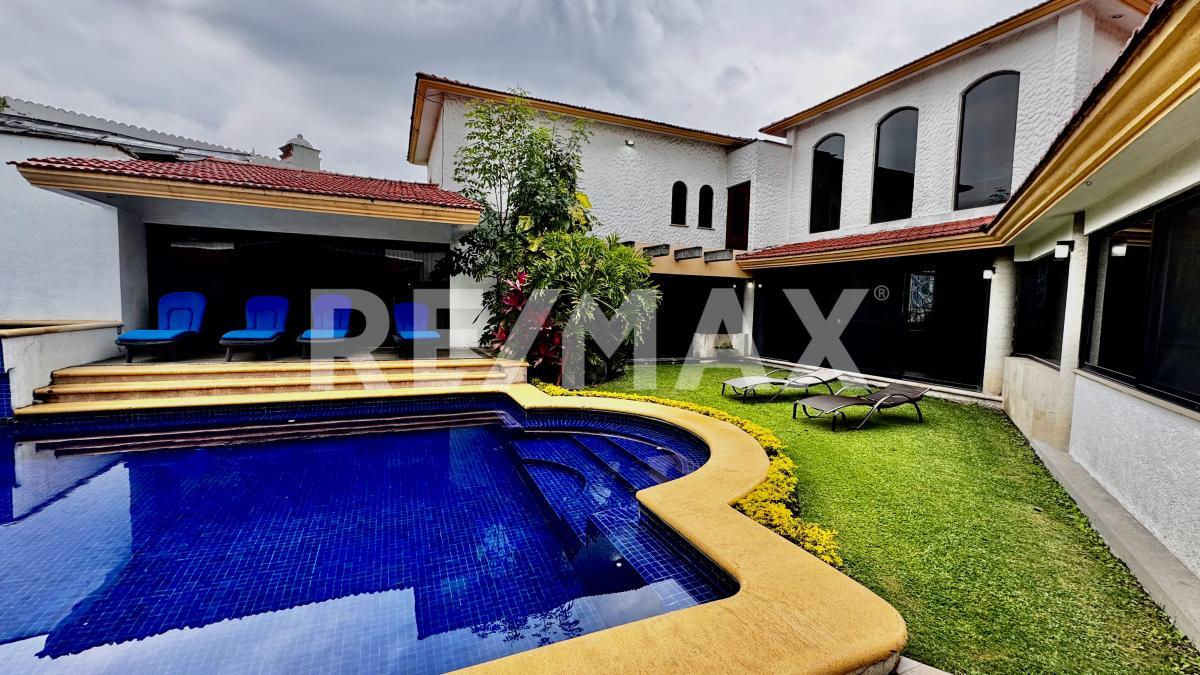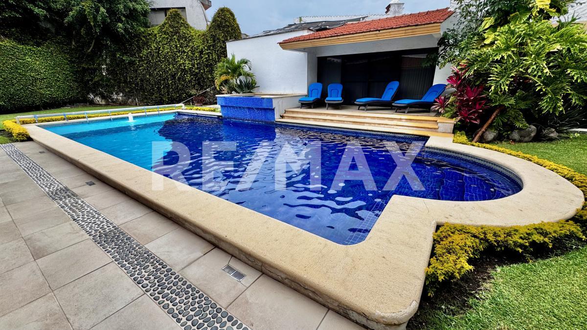 Esta equipada con aire acondicionado en la sala, vestibulo del primer piso y recamara principal, con cisterna, caldera y calentadores solares para la alberca y jacuzzi, drenaje, no fosa septica y área para 5 autos.