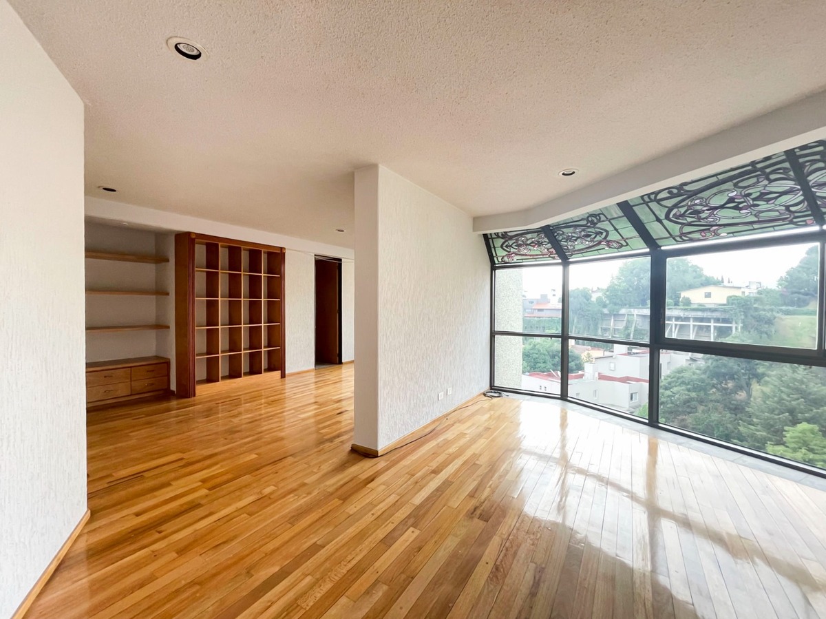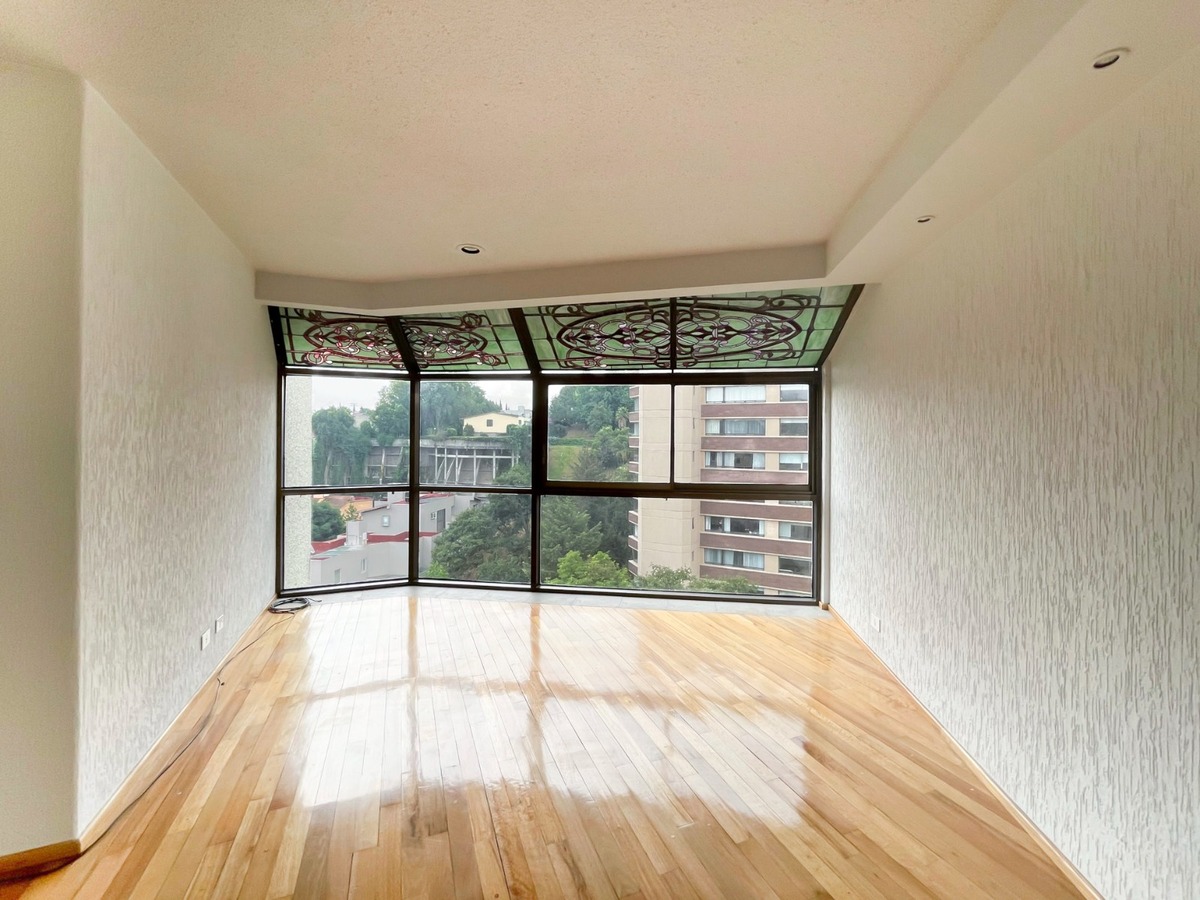 Iluminación natural, consta de 340m2 más 88m2 de terraza, sala de doble altura, comedor, baño de visitas,cocina integral, 2 recámaras con vestidor y baño, salta de T.V.