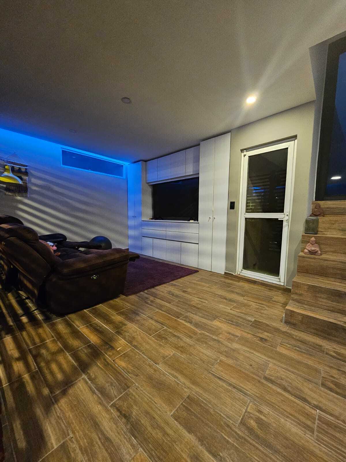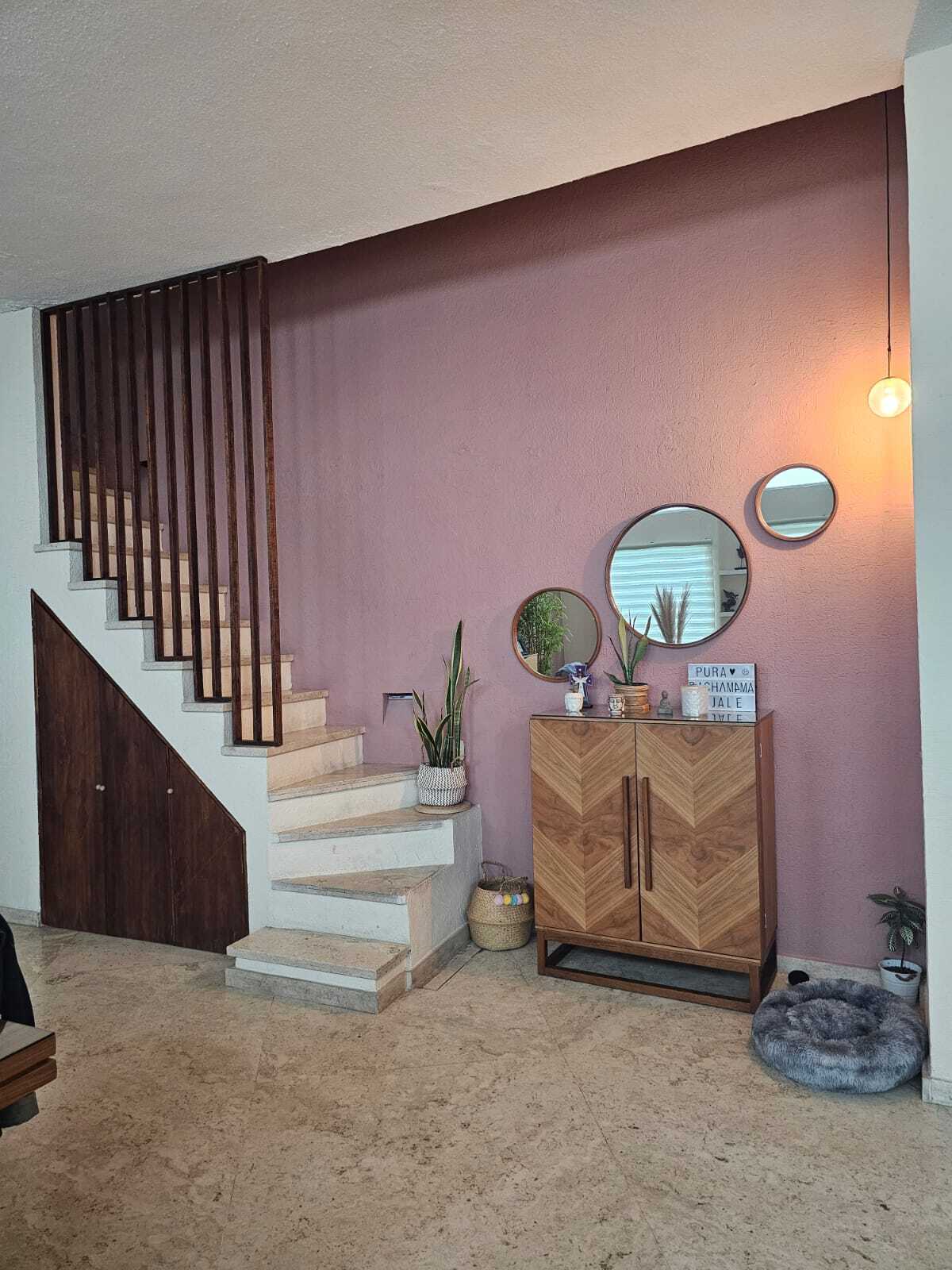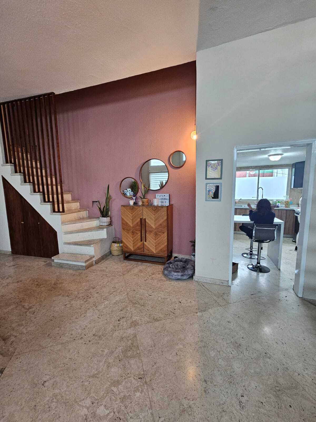PB: cocina equipada cubierta de cuarzo, barra desayunador, área de lavado y cuarto de servicio; sala y comedor de doble altura, recámara principal doble altura con vestidor y baño, 2 recámaras secundarias con closet y comparten baño.