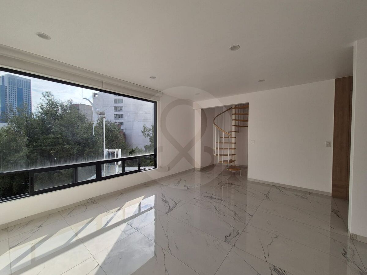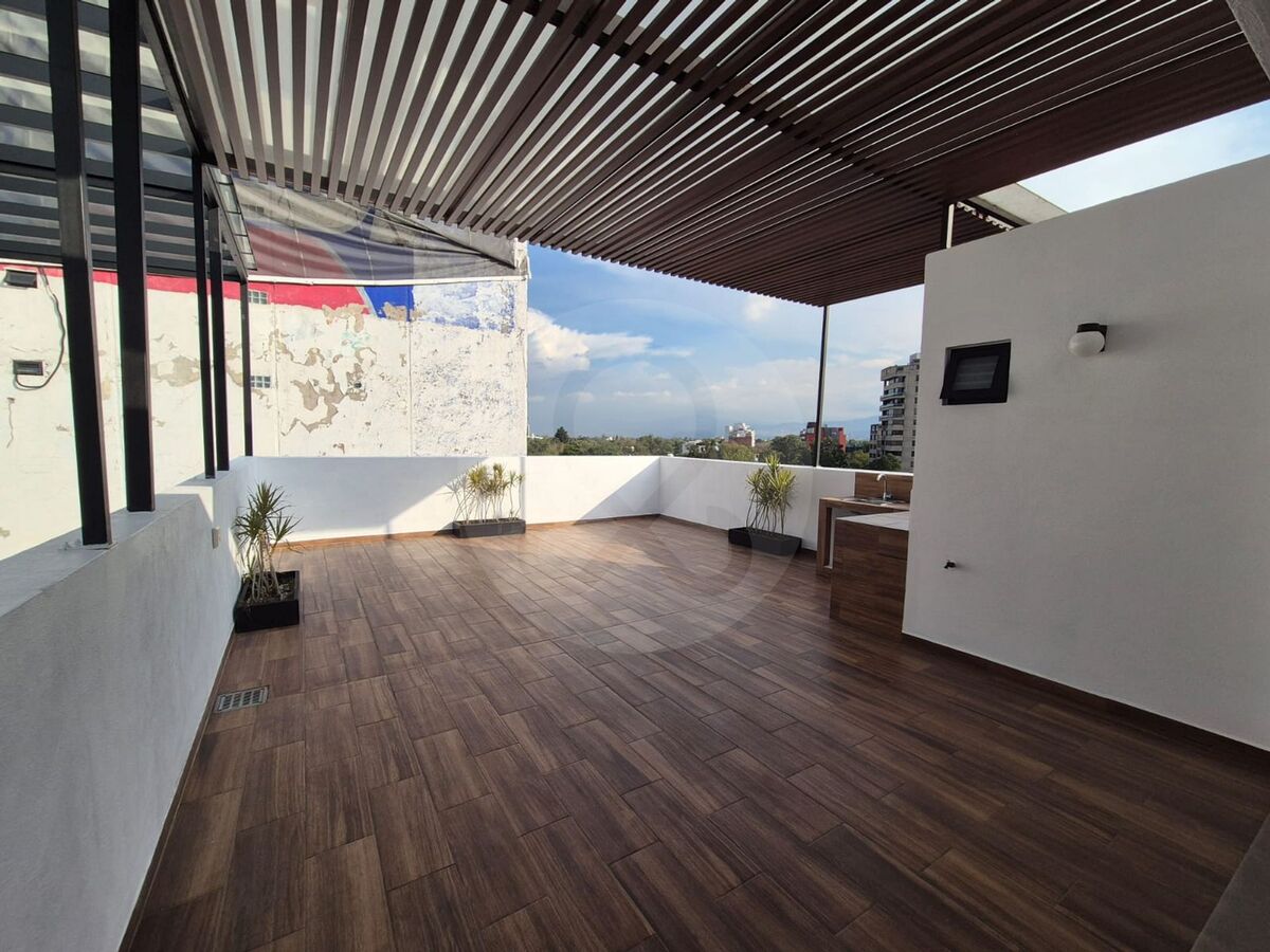 For Rent Excellent Penthouse Apartment on Rio Mixcoac, in the Benito Juárez delegation. This property has a total area of 120 m2, distributed in one bedroom, one full bathroom, one half bathroom, and two parking spaces. The construction is from the year 2018 and is in excellent condition. Among its services are an integral kitchen, terrace, dressing room, roof garden, elevator, and 24-hour security. The property is located on the fifth floor, with an excellent disposition towards the back of the building. The maintenance cost is $4000 monthly. It is an excellent opportunity to live in one of the most sought-after areas of Mexico City.Se Renta Excelente Departamento Penthouse Sobre Rio Mixcoac, en la delegación Benito Juárez. Este inmueble cuenta con una superficie total de 120 m2, distribuidos en una recámara, un baño completo, un medio baño y dos plazas de estacionamiento. La construcción es del año 2018 y se encuentra en excelentes condiciones. Entre sus servicios destacan una cocina integral, terraza, vestidor, roof garden, elevador y seguridad las 24 horas. La propiedad se ubica en el quinto piso, con una excelente disposición hacia la parte trasera del edificio. El costo de mantenimiento es de $4000 mensuales. Es una excelente oportunidad para vivir en una de las zonas más buscadas de la Ciudad de México.