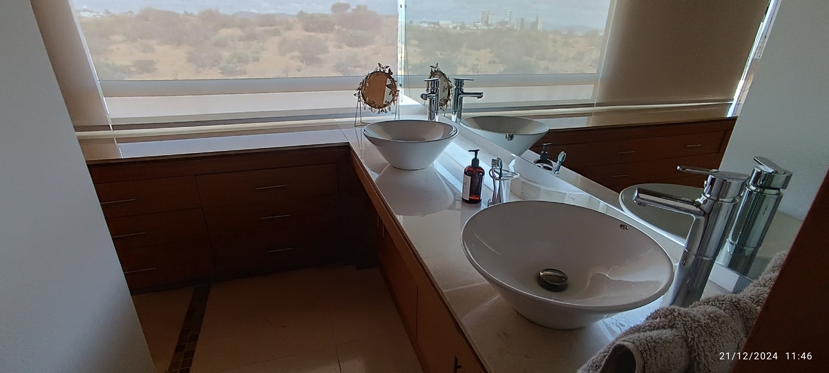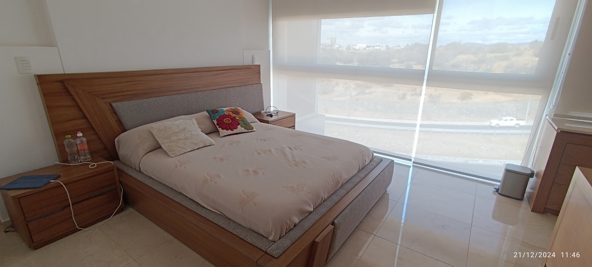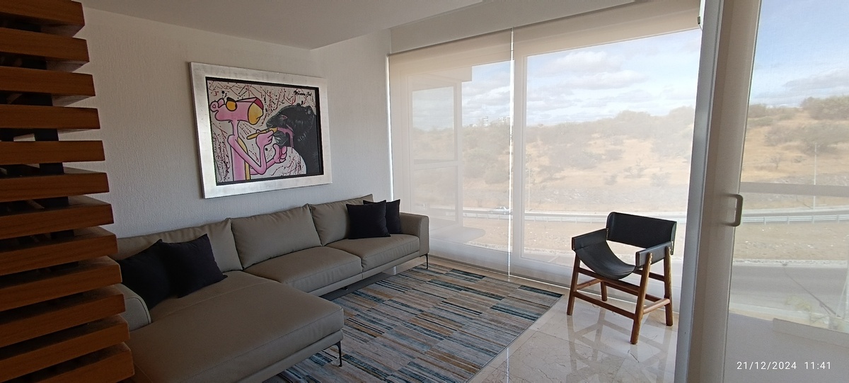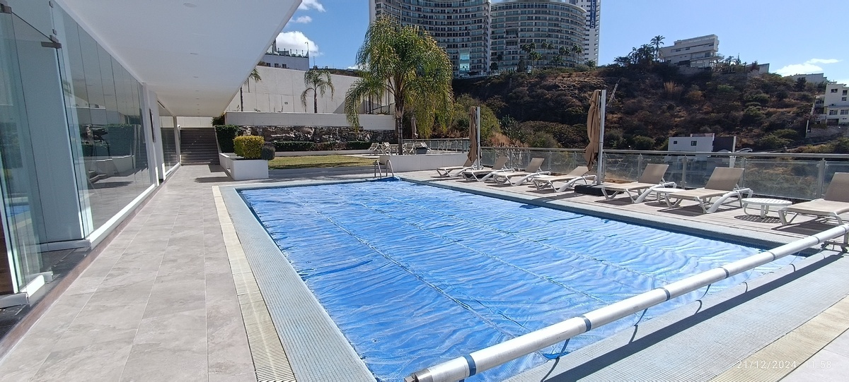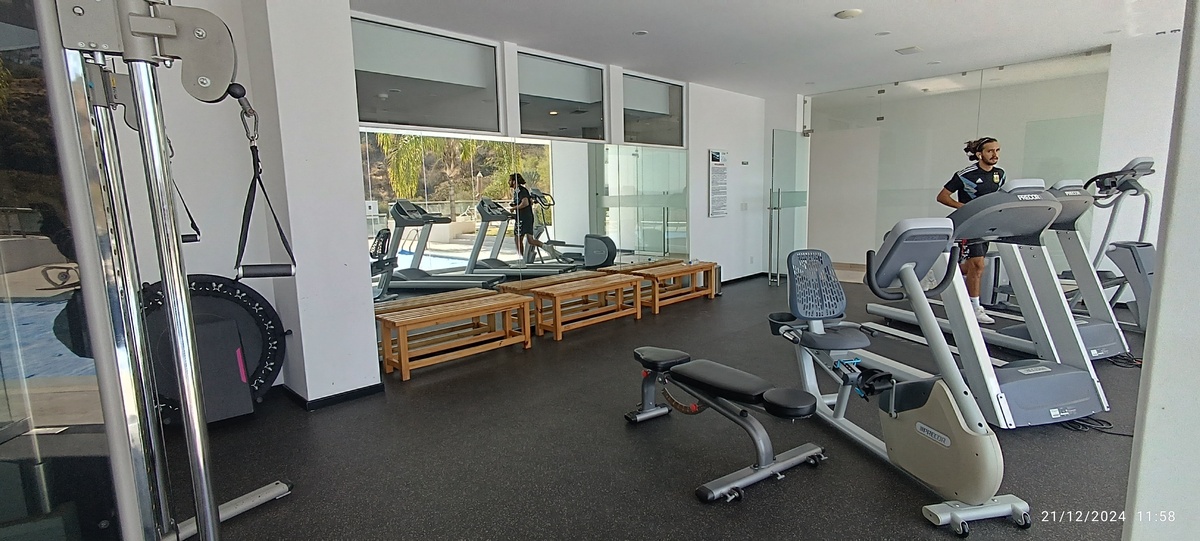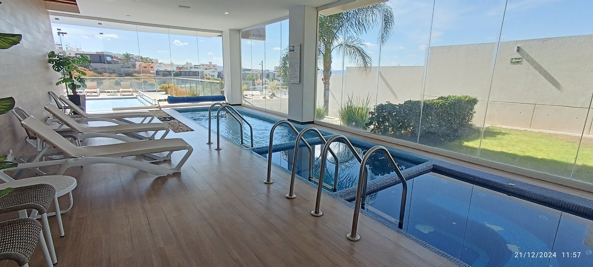 24-hour security, fall in love with its amenities, jacuzzi, swimming channel, recreational pool with a sunbathing area, and a lovely view of Querétaro. In the changing rooms, we have a sauna and steam room, as well as a fully equipped gym.